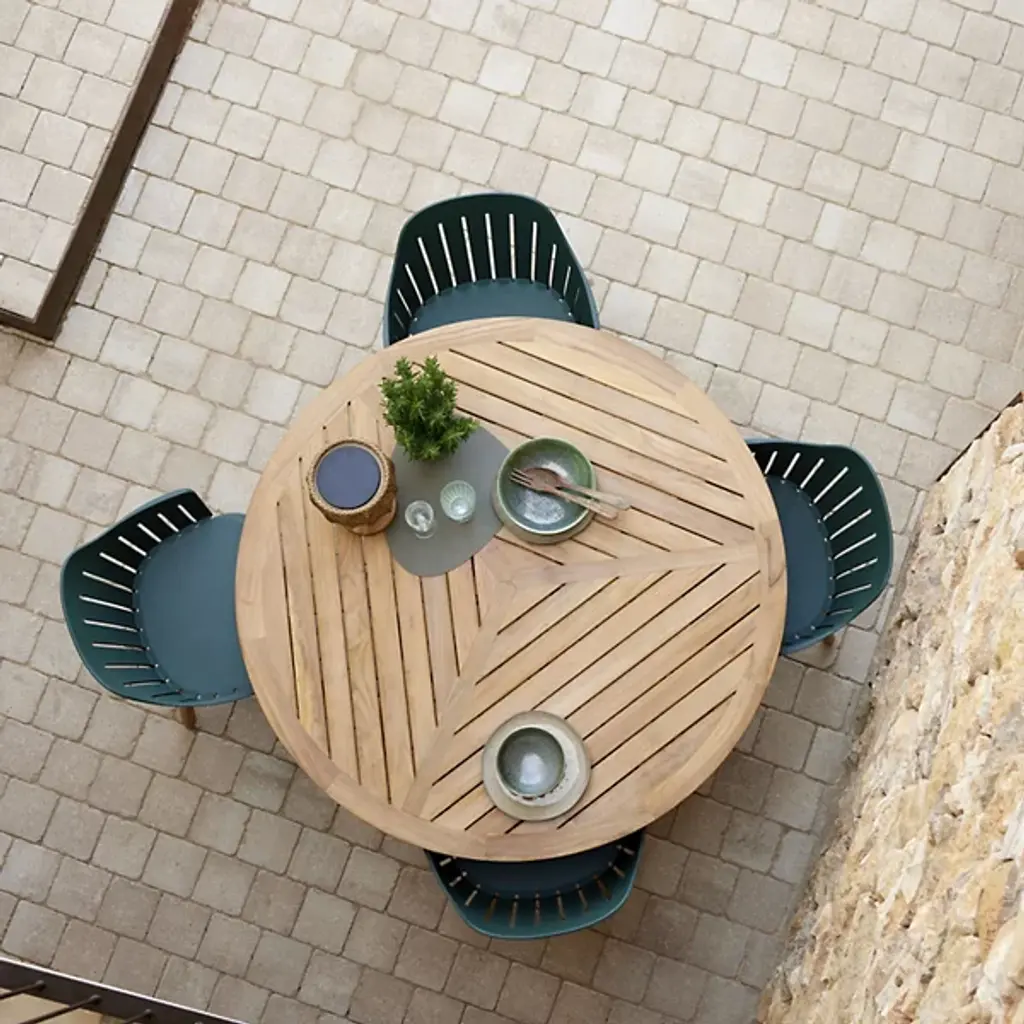 The Define Round Outdoor Dining Table from Cane-line embodies timeless sophistication. Crafted with precision from certified Grade A teak, it celebrates the enduring beauty of teak wood patterns. This table harmonizes aesthetics with durability, bringing warmth and charm to outdoor settings. Embracing the natural allure of teak, it gracefully develops a silver-grey patina over time, enhancing its inherent charm. A true representation of contemporary elegance, it serves as the ideal focal point for outdoor gatherings, seamlessly blending style with functionality.