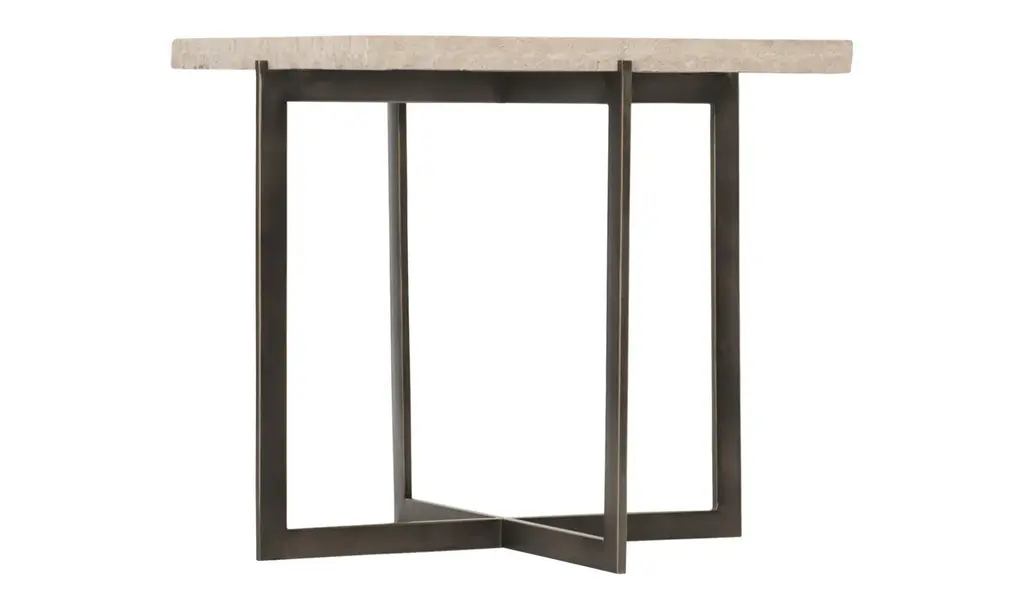 Elegant and refined, the sculptural base supporting the square top of this indoor-outdoor dining table will add a unique accent to any modern decor. Entirely crafted of steel, the striking leg is composed of four laser-cut sheets marked by different textures, while the top (5 mm-thick) is in steel with a burnished brass finish. This piece is available in other textured or smooth finish upon request.