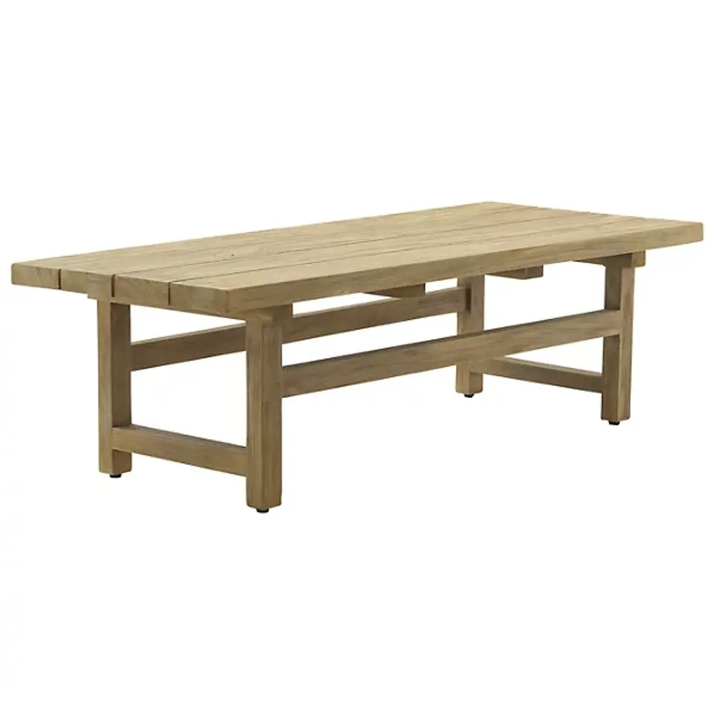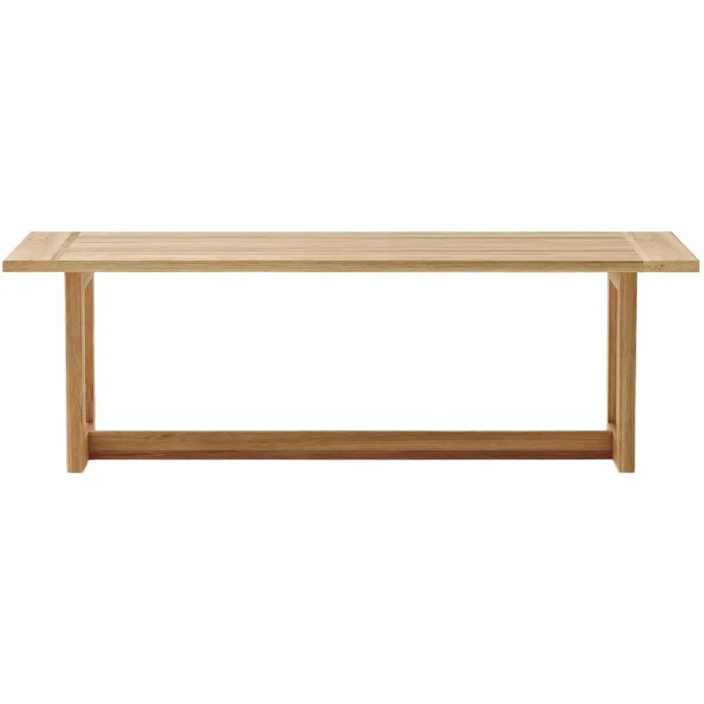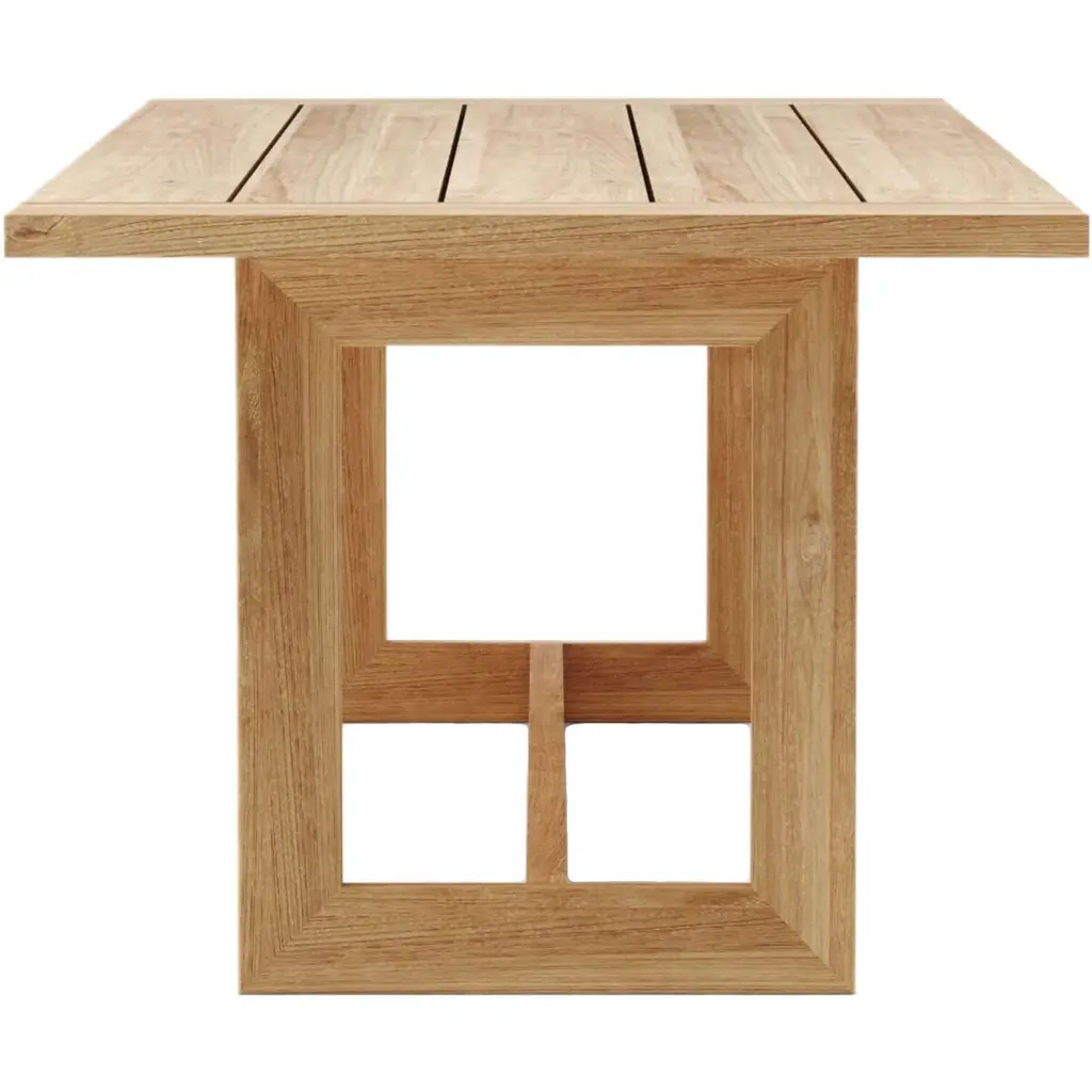 A solid teak table featuring large wide slats, the Deluna Dining Table is perfect for both home and outdoor settings. With a modern, simple, and striking design, it is crafted entirely from solid premium teak, unfinished and well sanded. Enhance your space by adding up to six matching armchairs from the Deluna Collection, which features teak wood with batyline, to complete a teak outdoor dining set. The Deluna Collection also includes a lounge armchair, sofa, coffee table, and sun lounger.