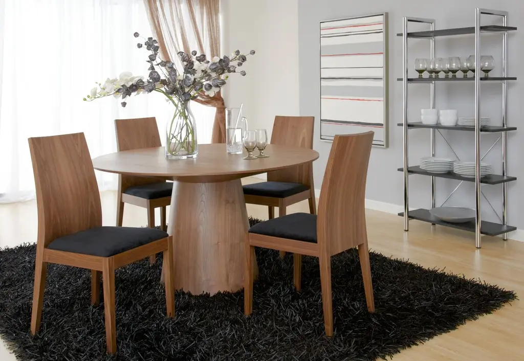 With its strong silhouette and beautiful finish, this dining table can easily be dressed up or down. Felt pads help protect your floor. Seats four people.