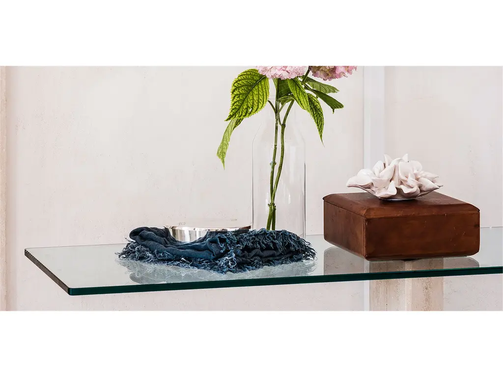 The Diapason console table offers a simple contemporary design adorned by luxurious materials. Manufactured in Italy by Cattelan Italia and designed by Studio Diapason, the console features a rectangular hollow base that creates an open and airy demeanor. With contrasting finishes, it adds some pizzazz to the room, and the spacious top allows for countless decor opportunities. The Diapason console table comes with a high degree of customization. It comes in two sizes and two shapes, and the top is finished in clear glass, while the base is available in an array of marble finishes. The console table is ideally matched with the Diapason dining table enabling its placement in stylish proximity to each other, encouraging flow and interior harmony.