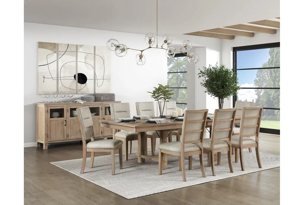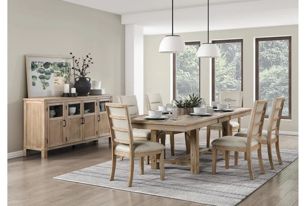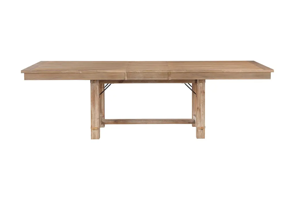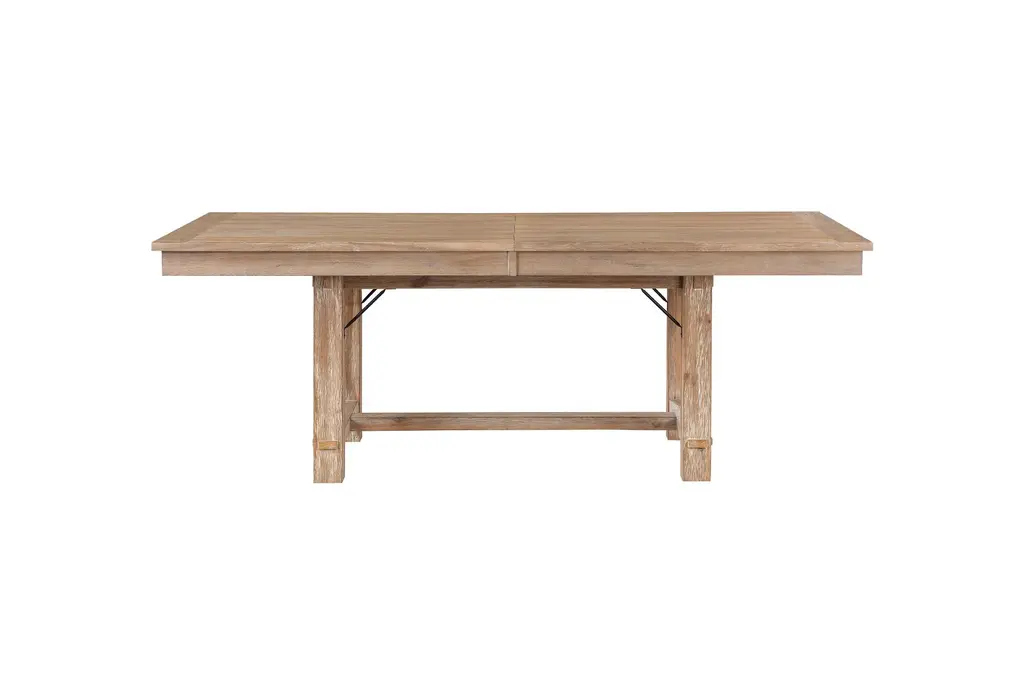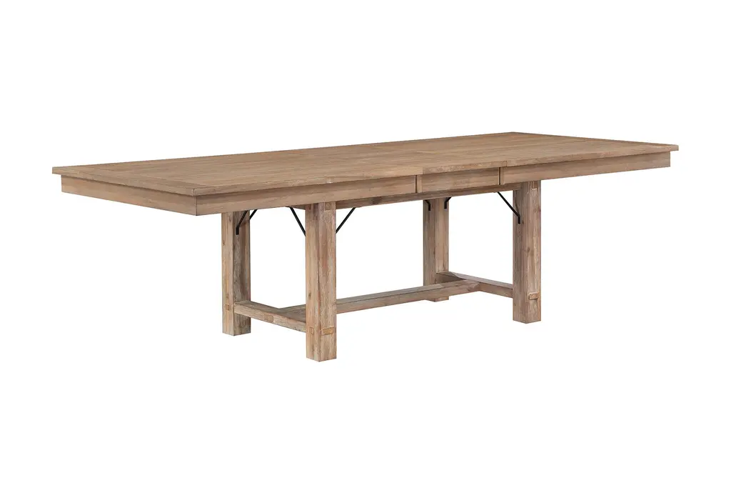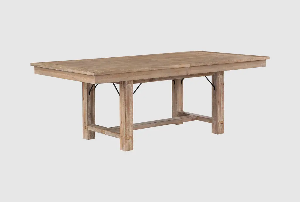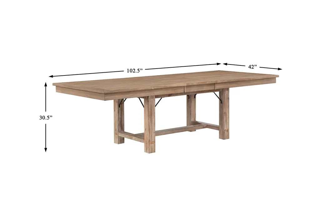 Dillon Natural Brown Wood Farmhouse 84-102" Extendable Dining Table | Rectangular | 6 Seat | Trestle | Asian Hardwood