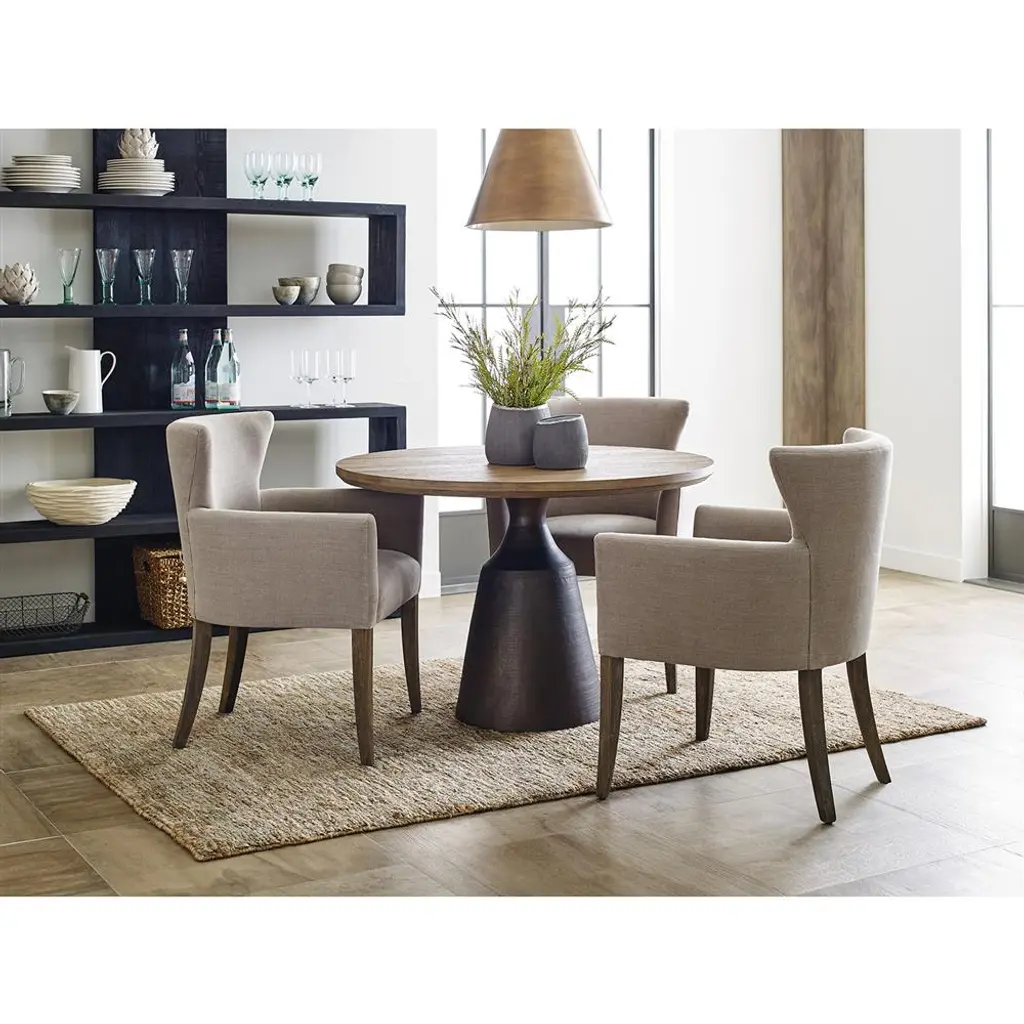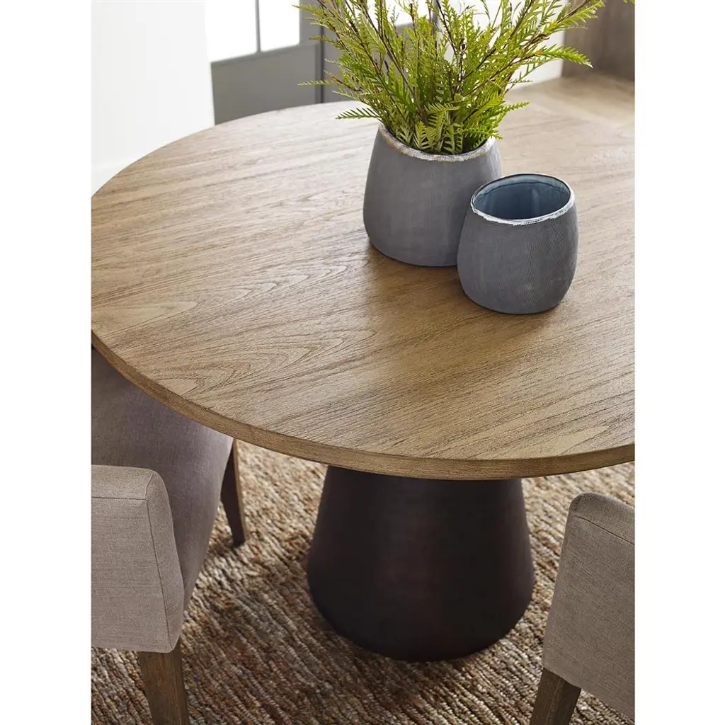 Dinalyn Industrial Loft Bronze Pedestal Round Teak Dining Table - 44"w