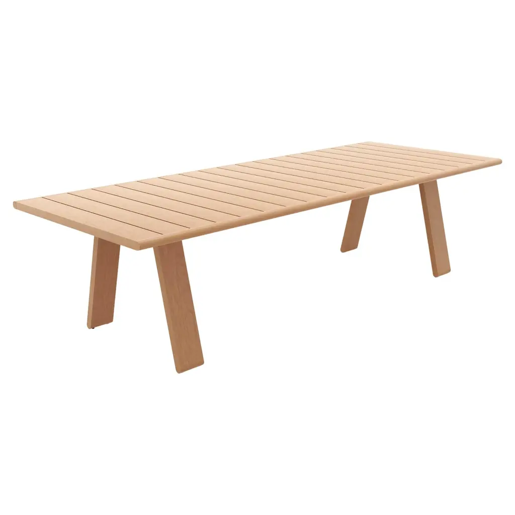 Dine Out expands with a new table that embraces the contemporary concept of informal dining, increasingly appreciated and widespread in the outdoor world. It can be paired with the armchairs and poufs from the same collection. The sculptural silhouette of the table is defined by the overlap of the round top and the conical concrete base.MaterialsLegs and top in natural teak.