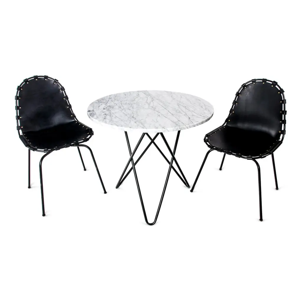 The Dining O Table was designed by Dennis Marquart, the designer and co-founder of OX Denmarq. The contrasts of different materials and surfaces are essential elements in Marquart’s design. The round marble top and slender metal frame provide the dining space with a touch of luxury and go beautifully together with many types of dining chairs. The white, Italian Carrara marble is characterized by gray veins crossing the white stone, and small details such as cracks are also part of its natural character. The marble top is attached to the frame with screws.