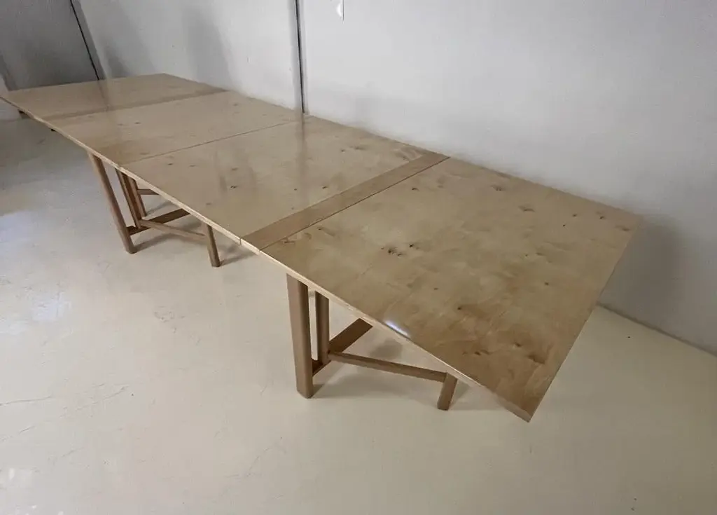 Maria Flap Folding Dining Table by Bruno Mathsson for Firma Karl Mathsson designed in 30s, A great example of the Swidish design. This table changes acording to the desires; it can be folded up, partialy open or fully open, Contempory, modern, fresh and functional. This piece has an attribution mark, I am sure that it is completely authentic and take full responsibility for any authenticity issues arising from misattribution