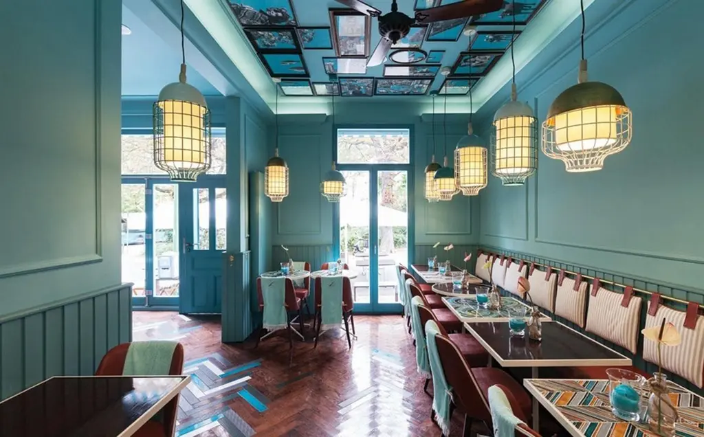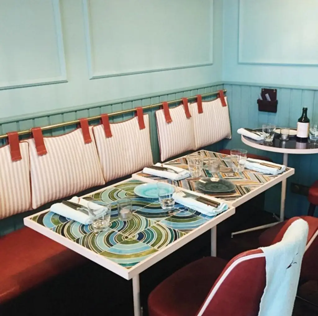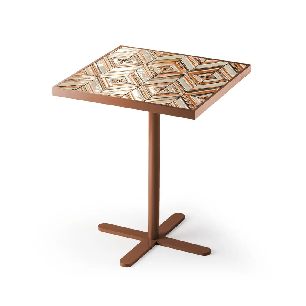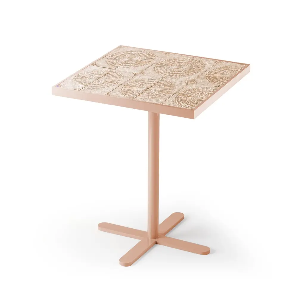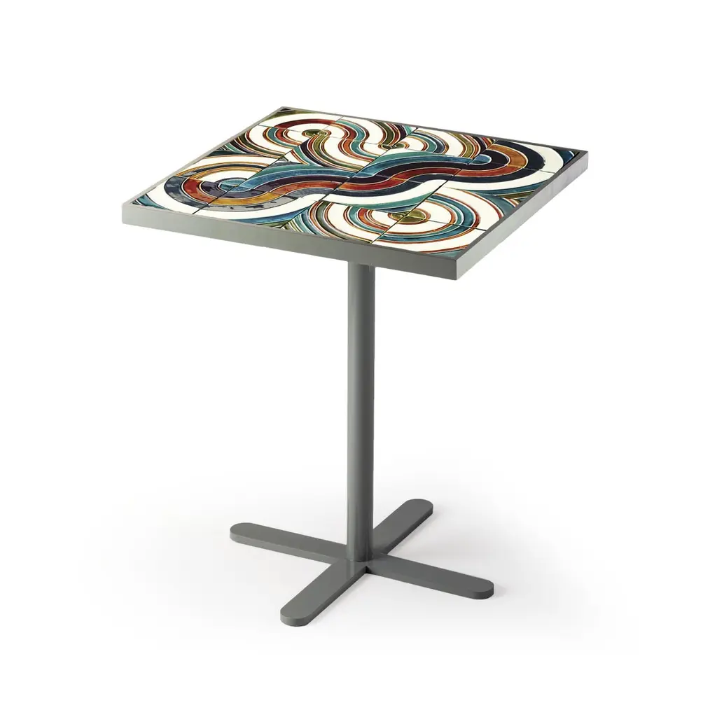 Caldas dining table is a piece that combines Bistrot inspired bases with handmade Portuguese tile tops, in various designs and colors. Its vibrance and color will stand out in any space, perfect for restaurants and cafes. Made to Order. Indoor only.Outdoor upon request.