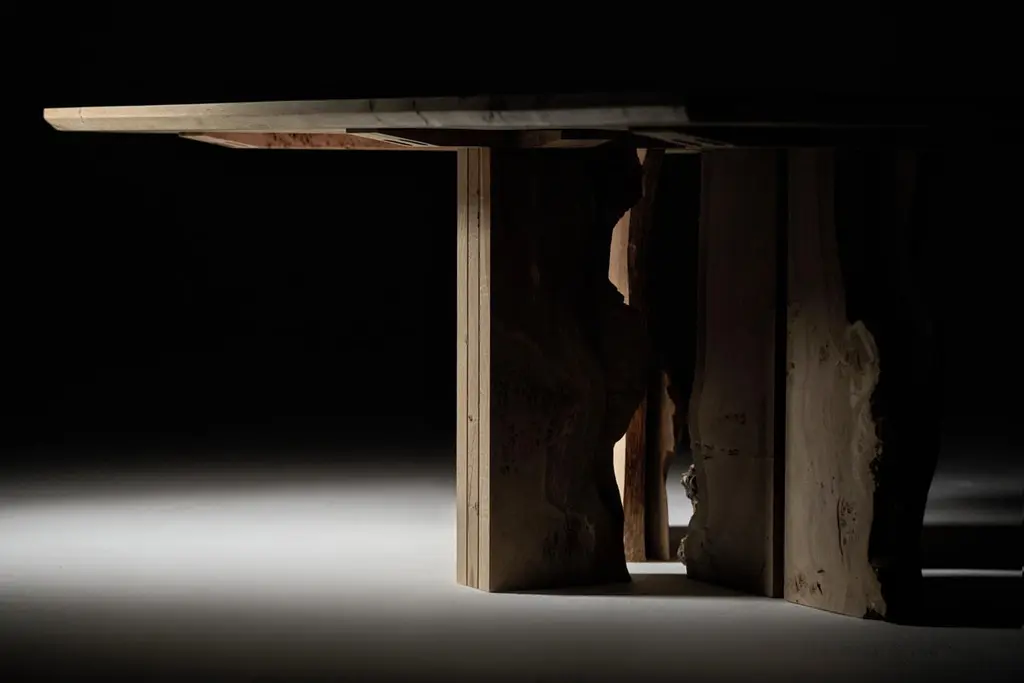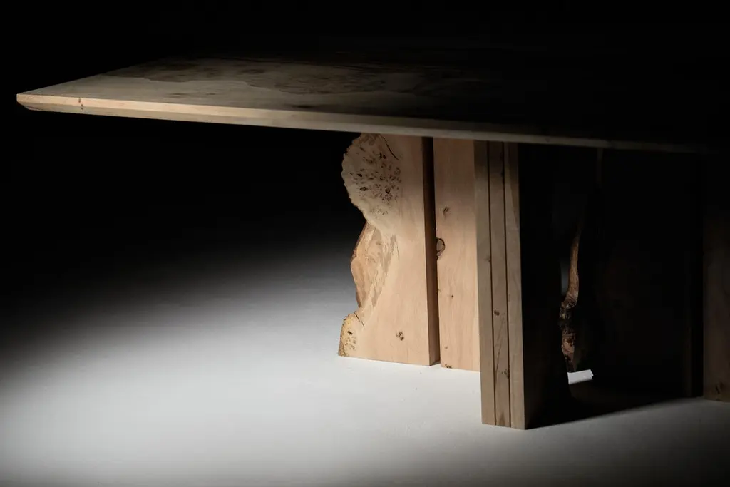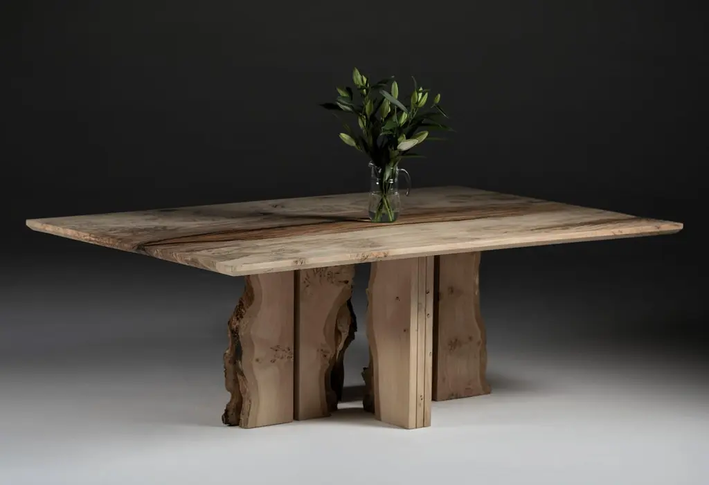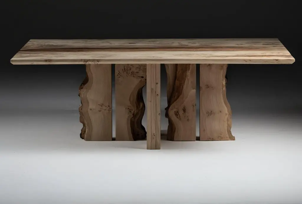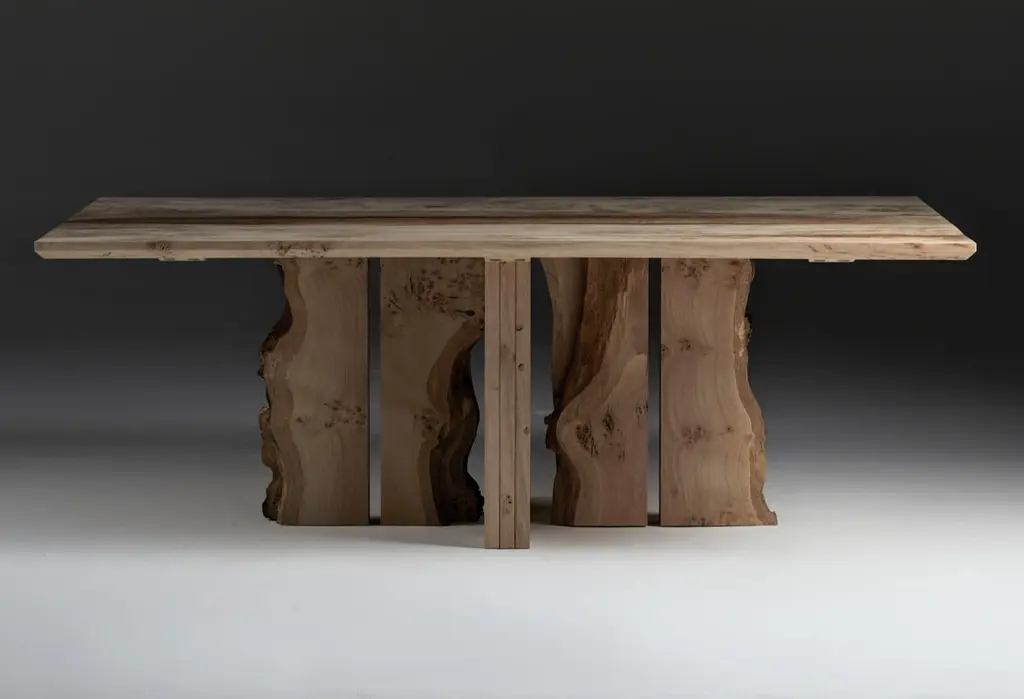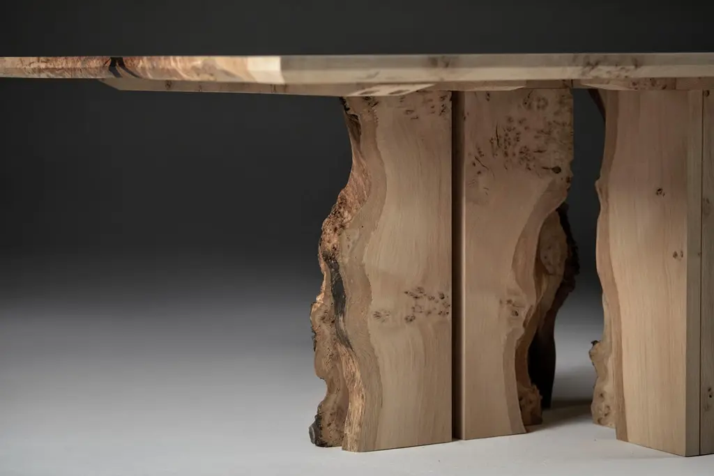 Dining Table, English Oak, On Inverted Live Edge Pedestal Legs Byjonathan Field