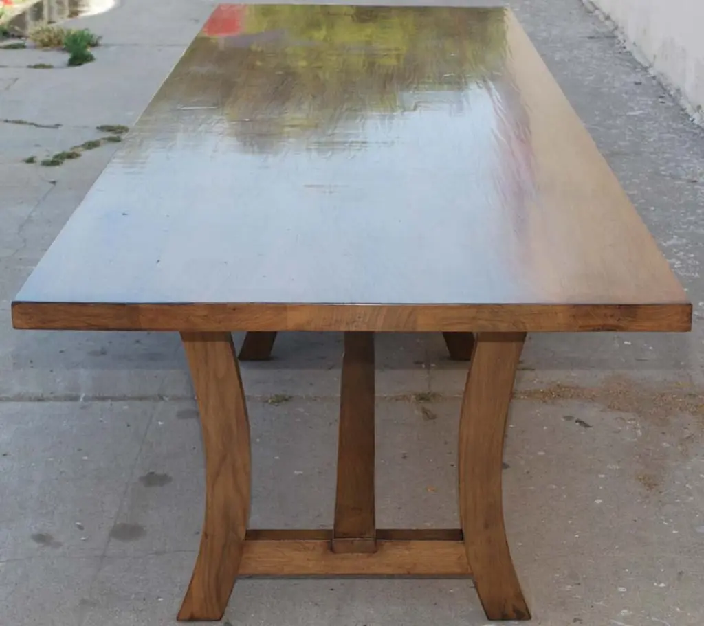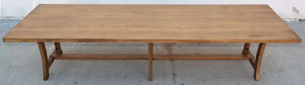 This six-legged dining table made from vintage walnut is seen here in 144" x 44" but it can be built in any size.Because each table is bench-made in our own Los Angeles workshop you can influence all aspects of design, including size, wood species and finish.If you require customized overhang dimensions please stipulate with order.