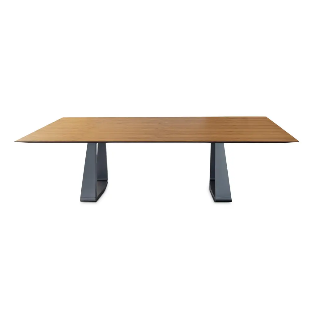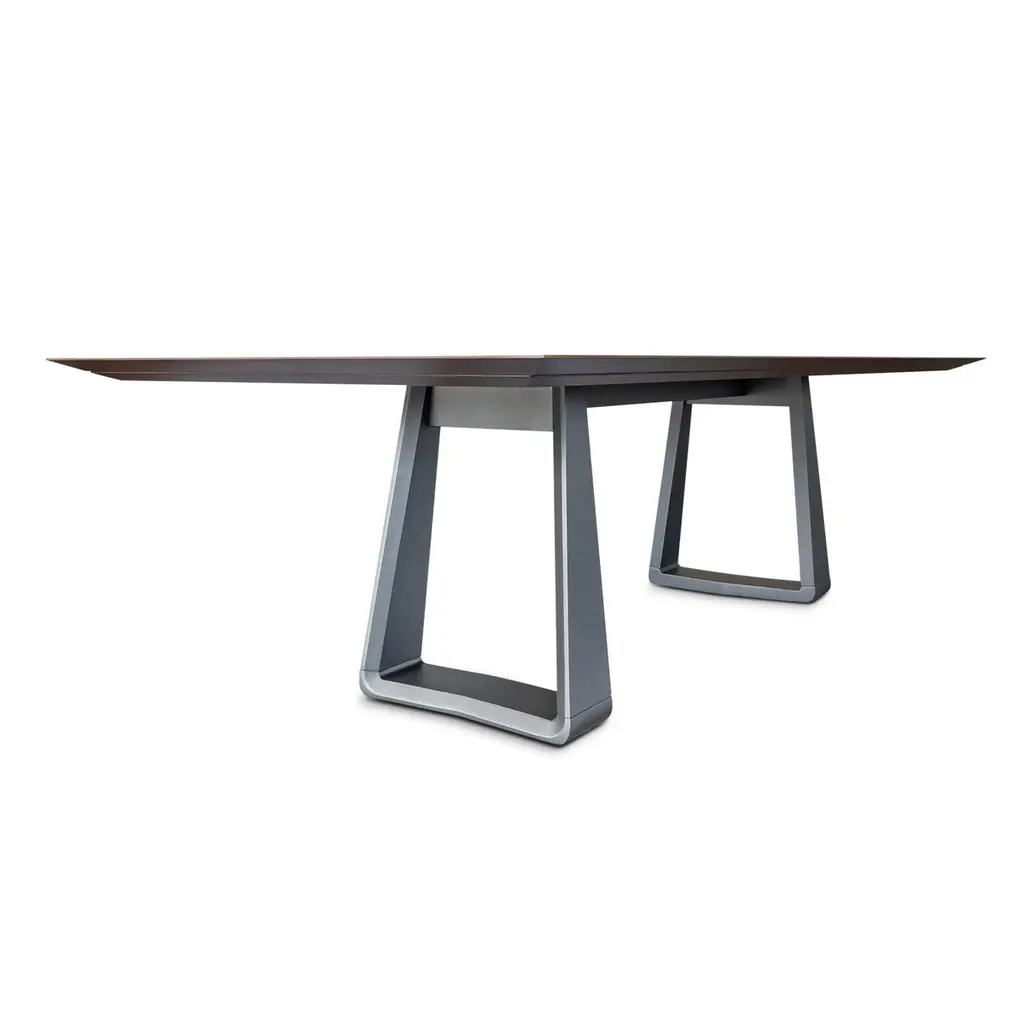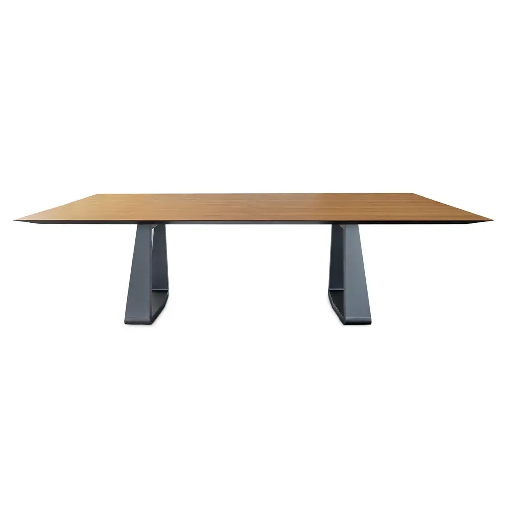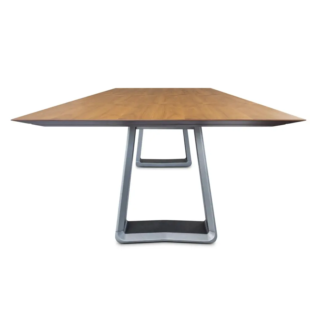 Dining Table With 98-Inch Teak Veneered Top And Graphite Painted Base, Wing Line