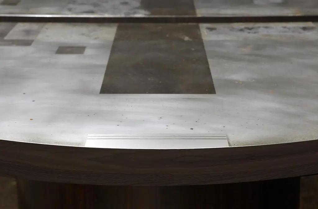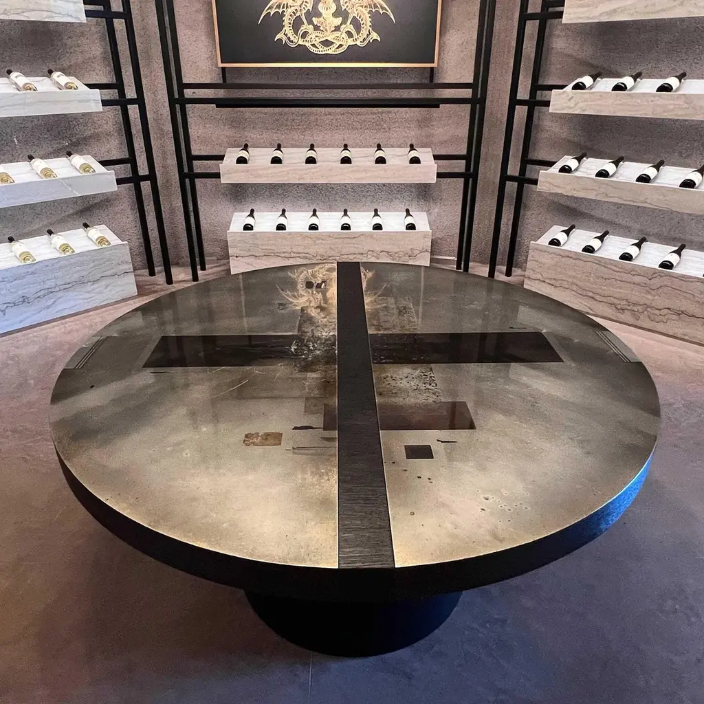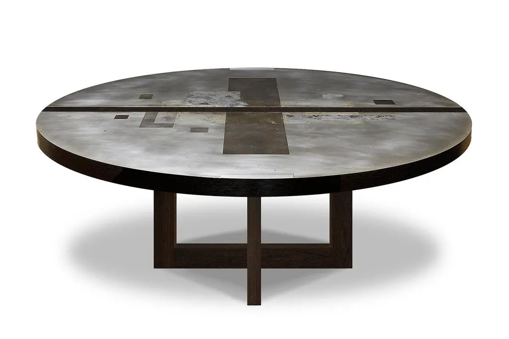 Divided Lands Zinc Round Dining Table With Frame Base By Artist Florian Roeper