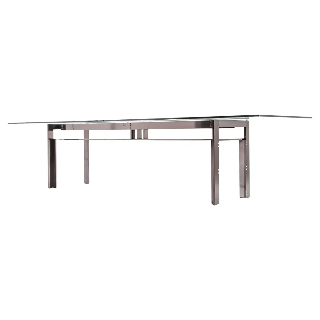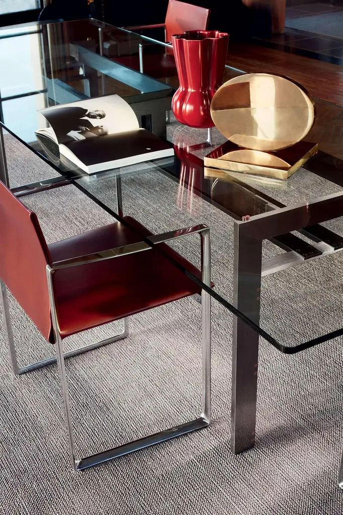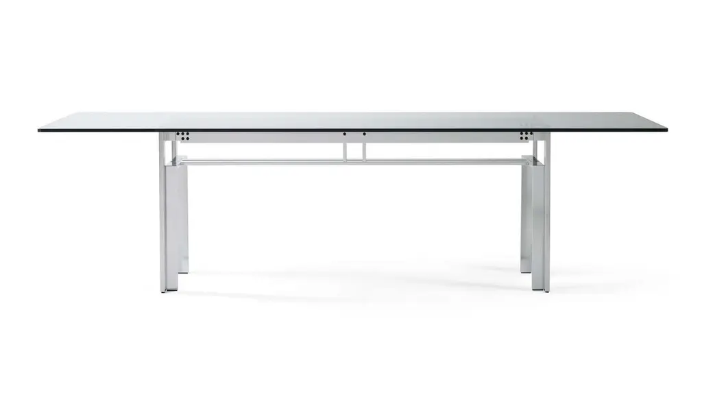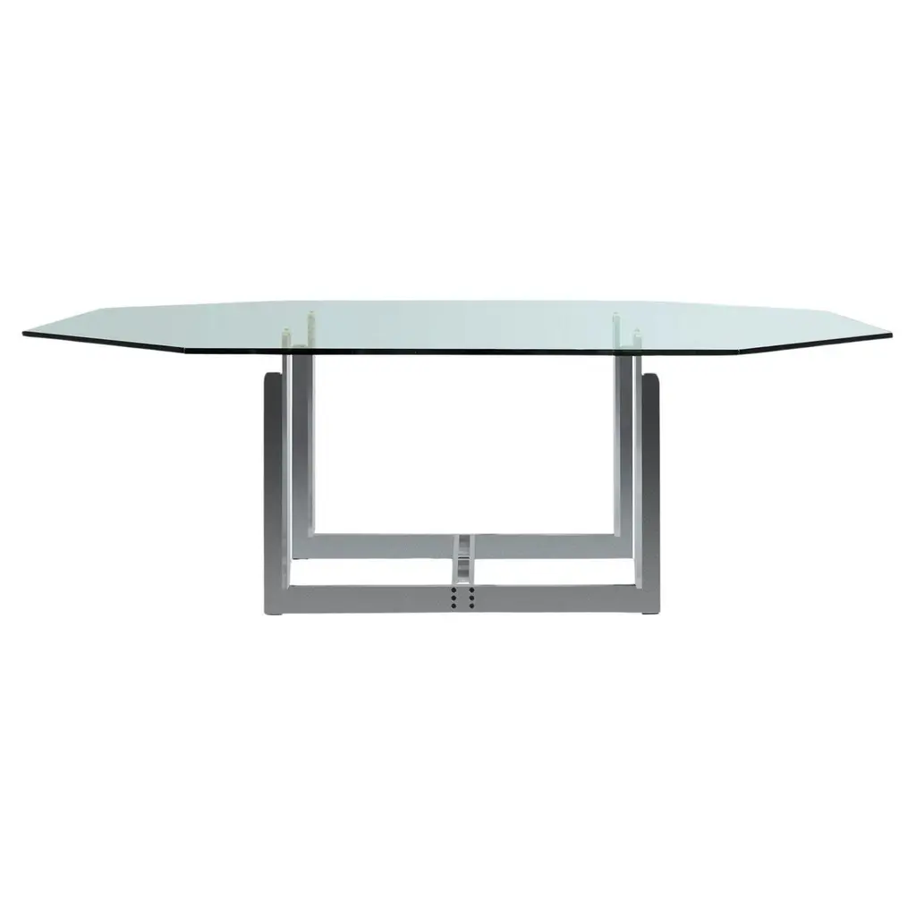 Doge Large Dining Table designed by Carlo Scarpa.Manufactured by Cassina (Italy)ULTRARATIONAL EMBLEMA sculptural structure that has become an emblem of Italian design, a trademark of the new ultrarational movement that in the late 1960s contemplated throwing off the restrictions of Rationalism by returning to traditional aesthetic values.With the Doge table, Carlo Scarpa takes an innovative approach to shapes and sizes, oriented toward an image of strength and character and facilitated by the author’s extraordinary ability to combine materials of different scale.The architectural base in thick, flat aluminum or steel profiles forms the core of this iconic table with glass top, where the refined elegance of the base takes on the starring role as seen through the glass top.BASEAluminum or brushed steel.TOPFloat glass or marble variantsA veritable masterpiece of the Italian design tradition, this sculpture-like table became, in the late-1960s, the emblem of the “Ultrarazionale” movement which, shrugging off the restraints imposed by the Rationalists, aimed to re- embrace traditional aesthetic values. Part of Cassina’s Simon Collection, the Doge table has been revisited with new textures and new materials. The architectural aluminium or satin-finish steel base, set off by the flat wide profiles, is the essential part of the table, while the elegantly refined mechanism linking top to base can be seen from above, through the glass of the table top. The new-look Doge table is available in five sizes, all taking their cue from Carlo Scarpa’s original design, with the table top being available in float-glass as well as white Carrara or black Marquiña marble.Important information regarding images of products:Please note that some of the images show other colors and variations of the model, these images are only to present interior design proposals. The item that is selling is on the first image. Important information regarding color(s) of products:Actual colors may vary. This is due to the fact that every computer monitor, laptop, tablet and phone screen has a different capability to display colors and that everyone sees these colors differently. We try to edit our photos to show all of our products as life-like as possible, but please understand the actual color may vary slightly from your monitorAbout the manufacturer:In a continuing dialogue between past, present, and future, Cassina has created the I Maestri collection, revisiting furnishing designs by the 20th century’s best-known architects, including Le Corbusier, Pierre Jeanneret, Charlotte Perriand, Charles Rennie Mackintosh, Gerrit Thomas Rietveld, Franco Albini, Frank Lloyd Wright and Marco Zanuso. While the designs and functional concepts have been precisely preserved, the models have been manufactured using evolved technology. This is also the company that has manufactured iconic pieces of contemporary design from the 1950s to the present day, ideated by some of the most important international designers. Today Cassina continues to look to the future of design with audacious, passionate curiosity and an open, holistic approach. It affirms its exclusive ability to furnish a home’s living and dining spaces completely and iconically with The Cassina Perspective: a concept, a philosophy, an informed, futuristic thought. A detailed, expansive horizon of combinations; when placed together, the products have an innovative soul and the modern icons create authentic, welcoming, personal atmospheres involved in a conversation dominated by a code of design excellence, formal sensitive awareness, solidity and cultural authority.