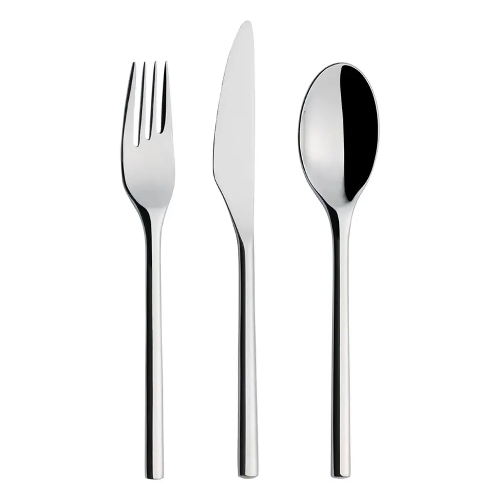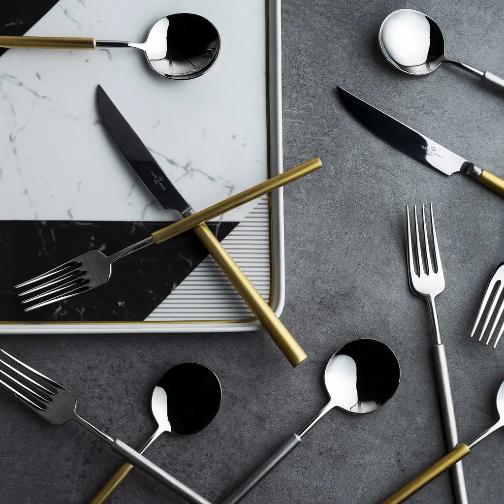Domo flatware is a line of silverware produced by Vista Alegre, a renowned Portuguese brand known for its fine porcelain, crystal, and glassware. The Domo flatware collection boasts a contemporary and minimalist design, characterized by sleek lines and a flawless finish. The Domo flatware collection includes an array of utensils, such as dinner forks, salad forks, knives, teaspoons, tablespoons, and dessert spoons. The pieces are available in sets that cater to different dining needs, from intimate family dinners to large gatherings. Moreover, the collection offers three finishes to choose from, namely polished, matte, and matte gold, allowing customers to select their preferred style and design. Overall, the Domo flatware collection is an ideal choice for those seeking an elegant and practical silverware collection that will last for years.