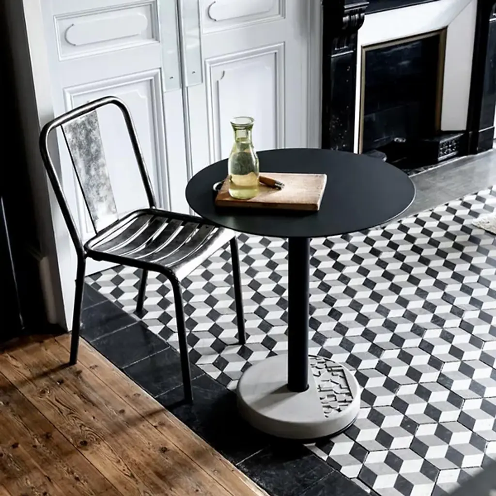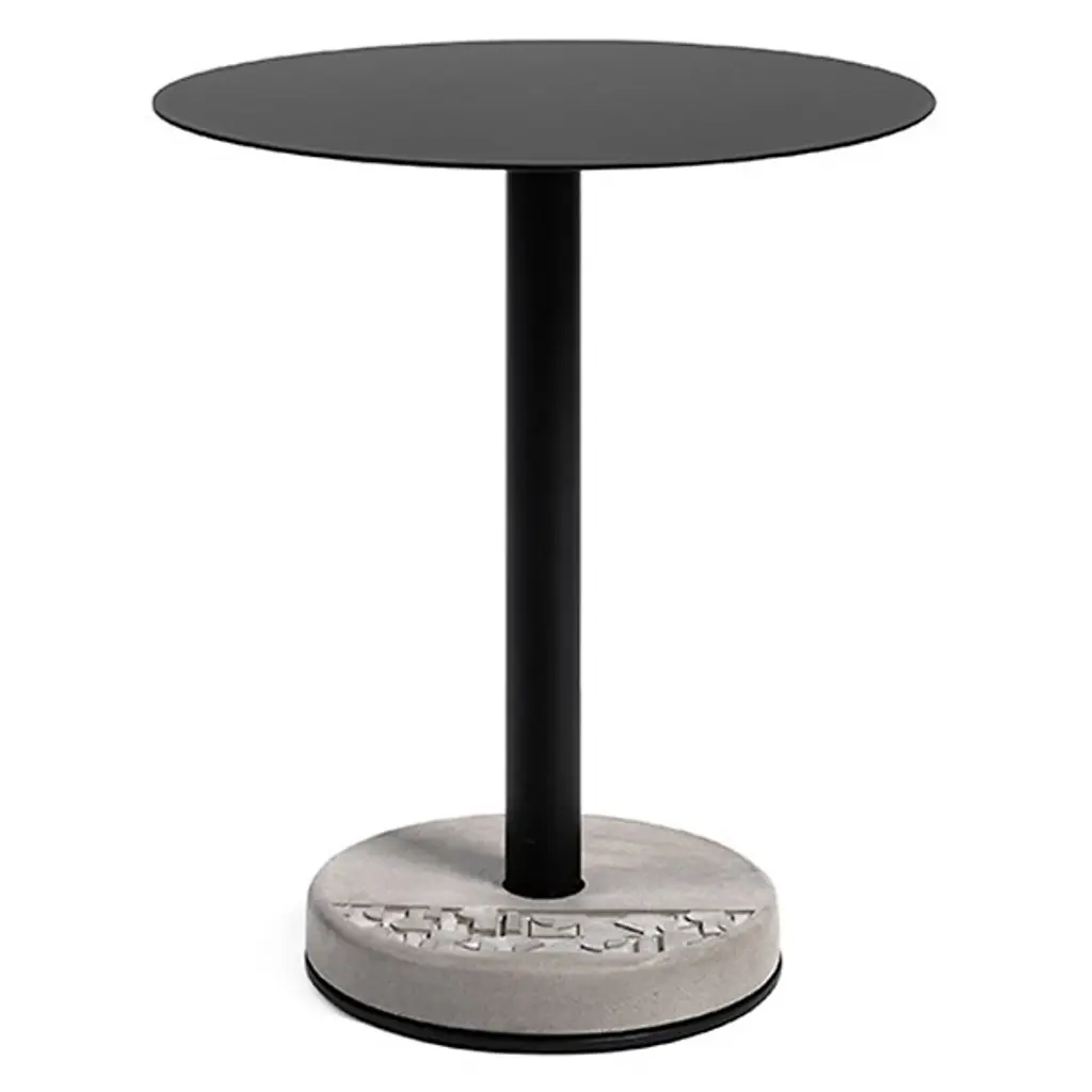 Bring a stylish and sleek addition to your indoor and outdoor spaces with the Donut Outdoor Round Bistro Table from Lyon Beton. Part of a diverse series of bistro-style dining tables, this French-made table is an elegant round-topped number that uses a powder-coated aluminum frame and top to provide structural strength and resistance to the elements. Finally, a “Donut” of proprietary-formula concrete with a partial geometric cutaway on its upper surface drops down along the column, resting atop the smaller round base below to add weight and stability to the table’s platform.