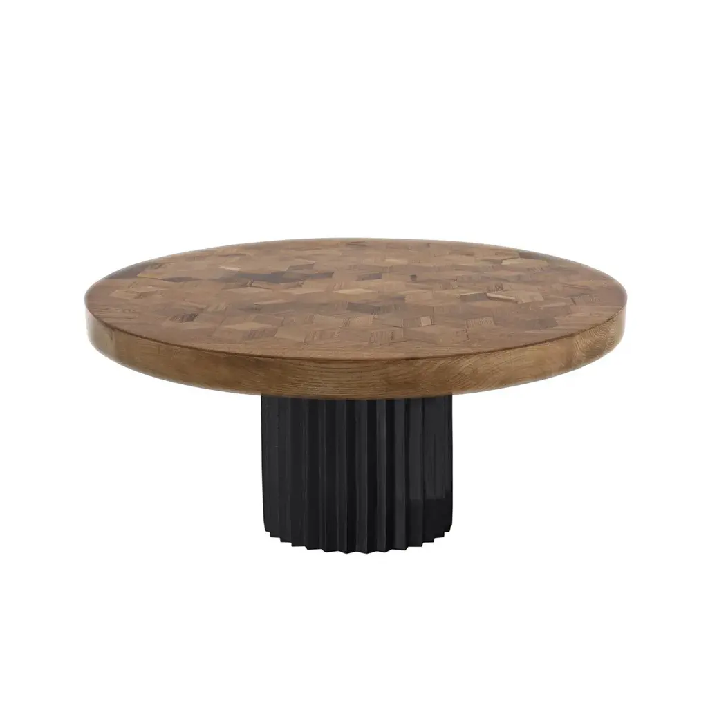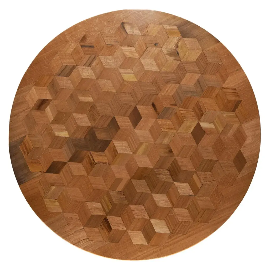 Doris Round Oak Marquetry And Blackened Cast Bronze Pedestal Dining Table By Fred & Juul