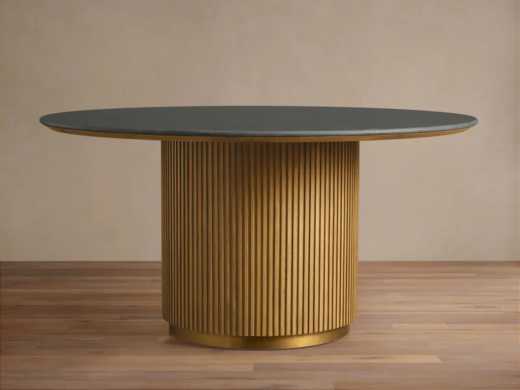 Dining tables with marble tops and multifaceted pedestals in cast bronze, blackened bronze or aluminum. Inspired by Doric columns in archaic architecture, the extruded multi-point star pedestals have a different finish on each vertical face: the cast metal is polished on one side but left raw on the other. The shading is amplified by the different finishes resulting in a dramatic effect. The pedestal(s) can be combined with tops in any kind of marble and with any shape or dimension. Crafted in Tuscany, Italy, in a foundry specialized in bronze sculptures, serving artists among the most renowned in the world.This piece is part of our Doris collection that also comprises a console, side and coffee tables.Standard top materials: pink Portugal, white Carrara, green Serpentino and gold Calacatta marble.Standard pedestal materials: oxidized bronze, blackened bronze and aluminum (polished and coarse).Standard sizes:round top 5'3" dia (seats 8)oval top 3'7" x 6'7" (seats 8)rectangular top 3'11” x 7'11” (seats 10)top thickness 0.8"single pedestal 25.2" diadouble pedestal 14.2" dia eachThis listing is for a single pedestal round table with a pink Portugal marble top and bronze pedestal.About Fred&Juul:Fred&Juul renew traditions by making customs and techniques reappear from the past while applying fine Italian craftsmanship to contemporary design. Founded by Italian-Dutch architects’ duo Federico Minarelli and Julie Janssen, the brand explores the possibilities of producing designs that are versatile and elegant while being exclusively handcrafted by local artisans from traditional materials like brass and solid wood. Fred&Juul’s design philosophy is aimed at sustainability and contrasting the throw-away society by creating pieces that will last, both for their exceptional quality and for their timeless appearance.Every piece is manufactured in small specialized workshops scattered around Tuscany. The designers manage the entire production process and have a direct relationship with the craftsmen and women, who are involved in the design process from the early stages. The result is contemporary collection that conjures up the refined artistry of centuries old craftsmanship.