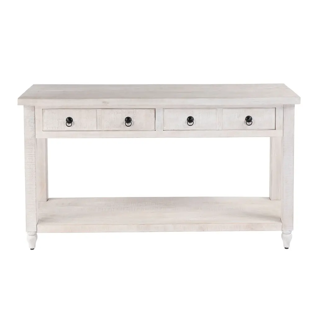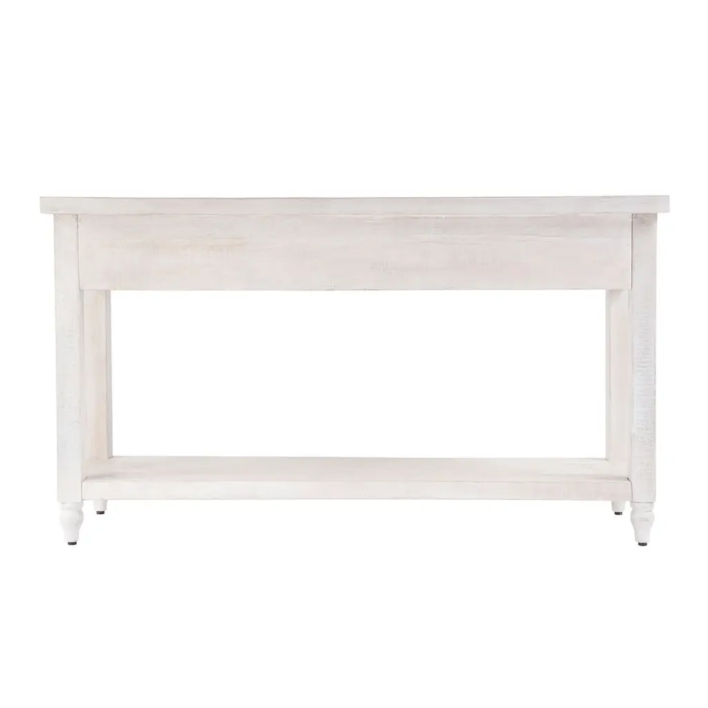 Elevate your space with the artistic charm of this console table. Its undulating top and lower shelf create a unique, flowing pattern that adds texture and visual interest, making it a standout piece in any room. Crafted with a blend of rustic warmth and contemporary appeal, this table features two spacious drawers for convenient storage of everyday essentials. The open lower shelf, with its gentle curves, provides ample space for displaying décor or organizing baskets. Whether in your entryway, living room, or dining area, this 54" wide console table brings both practicality and an artistic touch to your home.