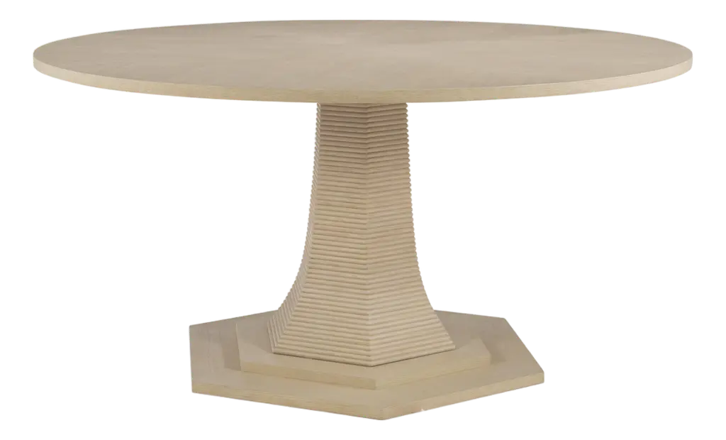 Dos Gallos Custom Round Walnut Wood Dining Table With Stacked Pyramid Pedestal