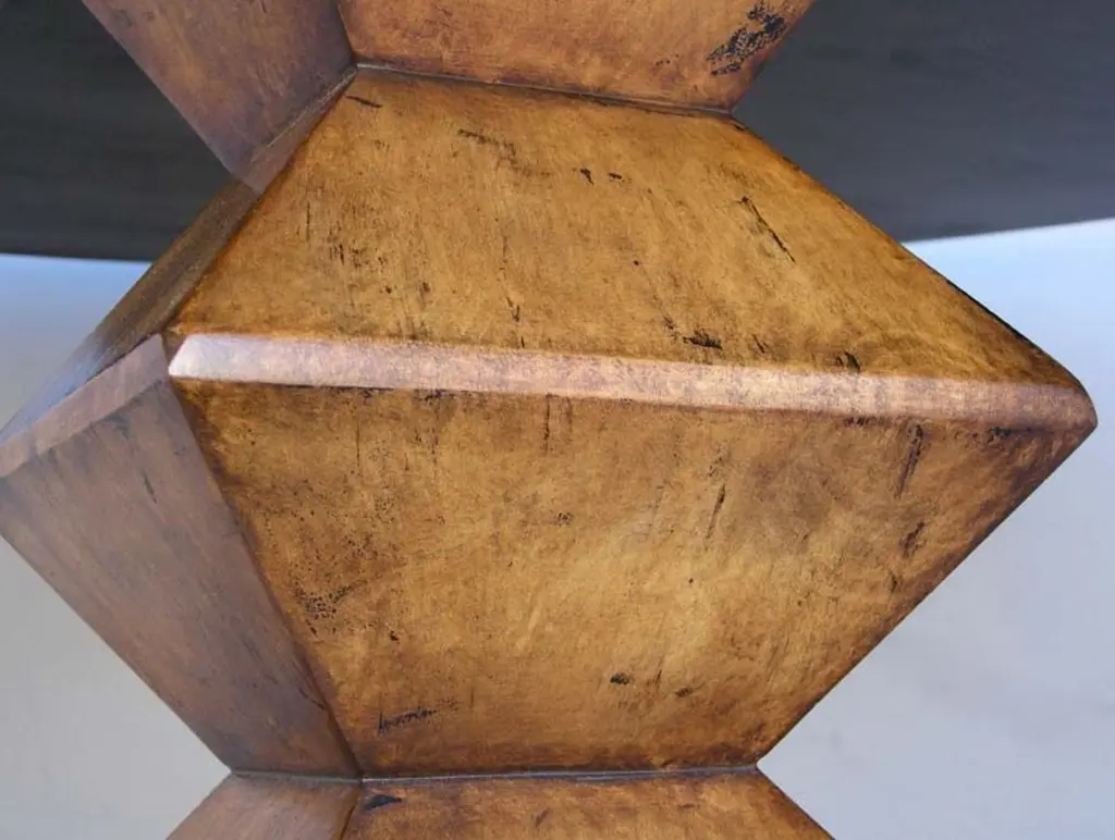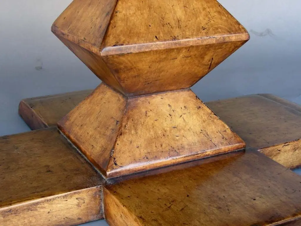 Custom Portuguese Pedestal table with stacked pyramid pedestal.Can be made in mahogany, walnut, oak with a choice of different finishes and ranges of distress. Shown here in walnut with an academy finish 72 D x 30 H. Designed by Dos Gallos Studio and bench made and finished in Los Angeles.PRICES ARE SUBJECT TO CHANGE DUE TO FLUCTUATING WOOD AND LABOR PRICES. PLEASE INQUIRE BEFORE PLACING AN ORDER. CUSTOM ORDERS ARE NON RETURNABLE. FINAL SALE