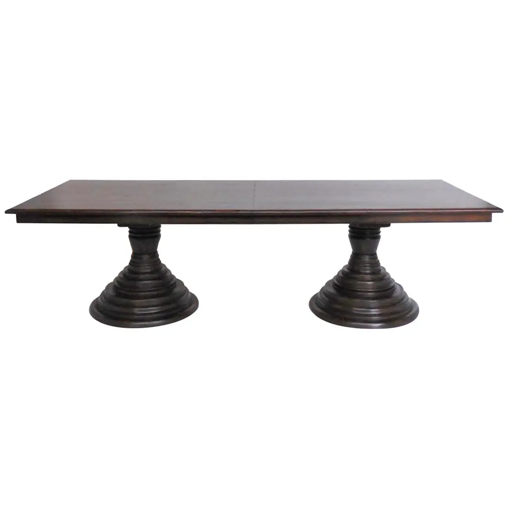 Dos Gallos Custom Walnut Wood Pedestal Dining Table With Leaves