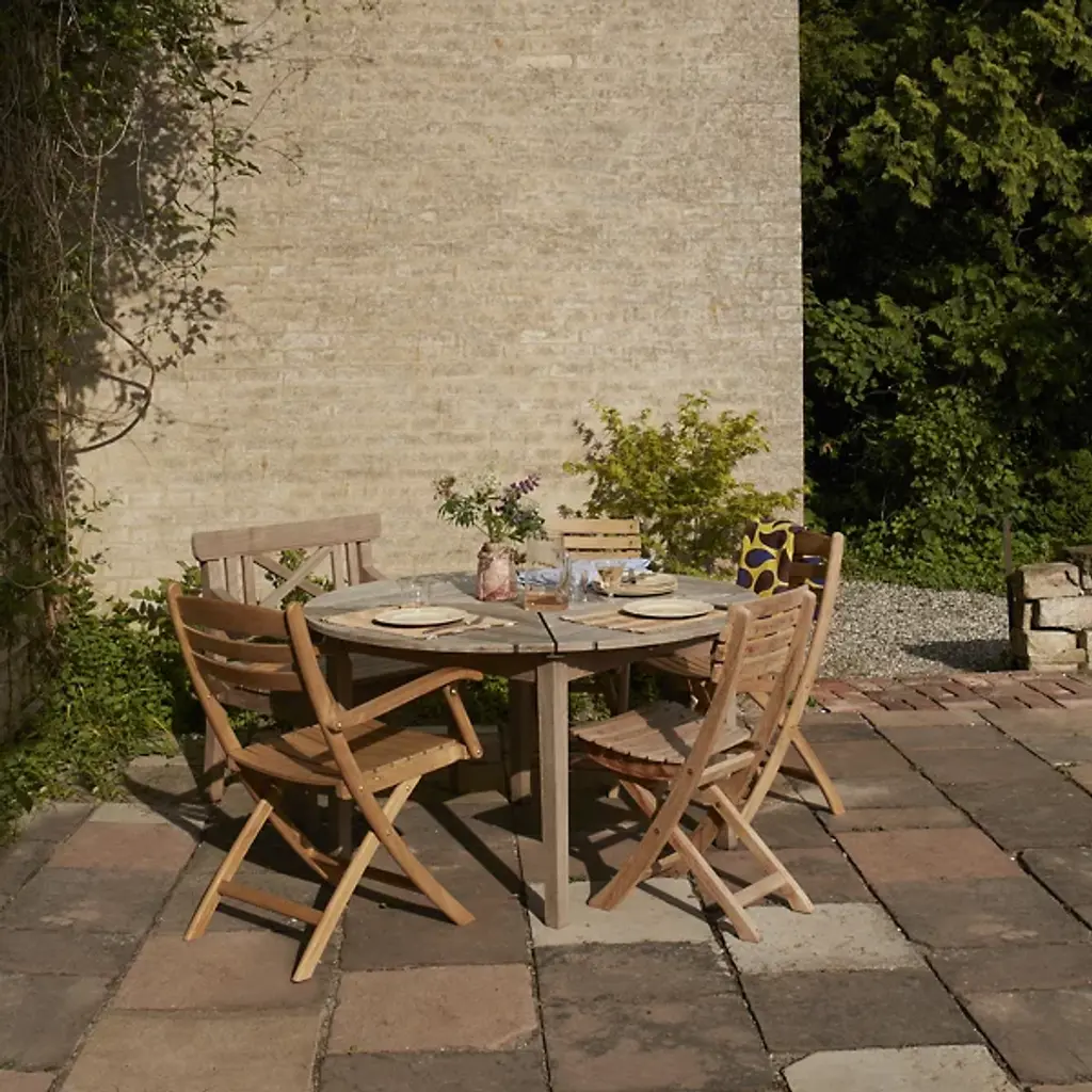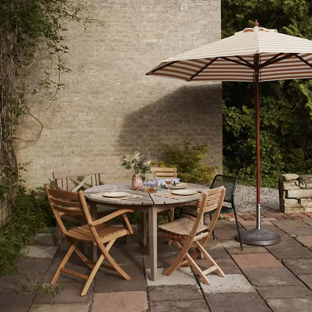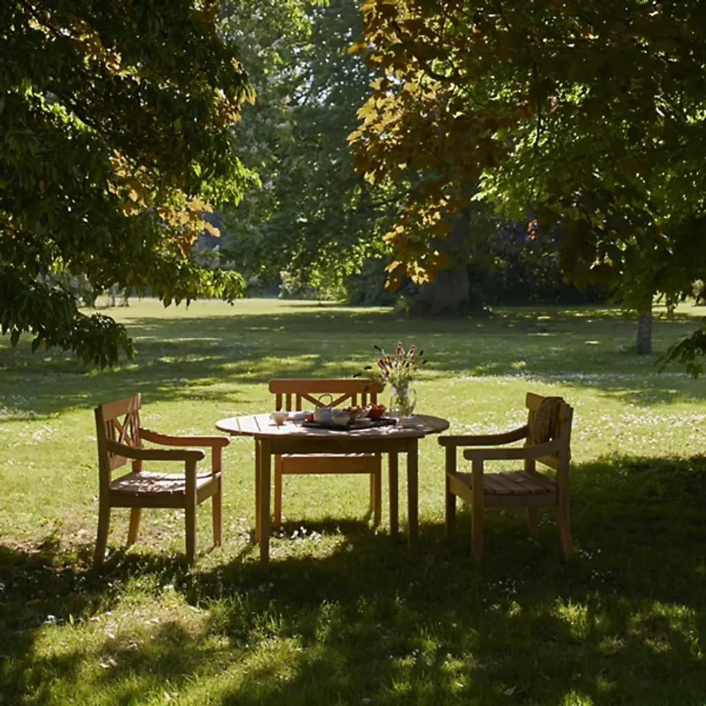 Enjoy outdoor dining with the Drachmann Outdoor Round Dining Table from Fritz Hansen. Designed by Mogens Holmriis, your side table features a circular tabletop. The look of your table is inspired by the Danish Poet Holger Drachmann. The Drachmann Round Side Table is composed of wood that comes from responsibly managed forests. The wood lining the table’s surface boasts elegant, linear patterning, which accentuates this table’s Scandinavian design. A collection of sturdy lags keeps your table well-balanced.
