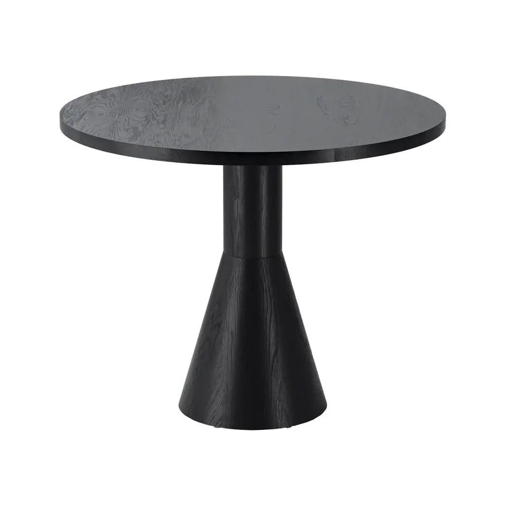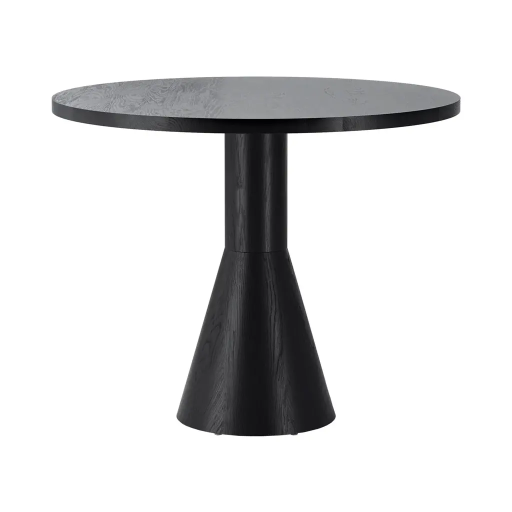 Centered on a striking cone-shaped base, Massproductions' dining table was originally designed and developed for the newly reopened National Museum in Stockholm. Available with a choice of a round or square tabletop, Draft is responsibly crafted in solid ash with a grey or black stained finish or in warm natural beech. A modern play on classic forms, the table makes for a welcoming and individualistic addition to many a decor.