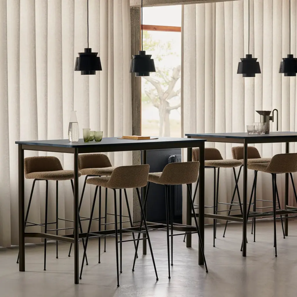 Drip, a highly versatile table made from 80% recycled aluminium, has been designed specifically with the contract market in mind. Knowing that contract clientele require their pieces to be flexible, Welling devised a table system that would adapt to different uses. Arriving as a knock-down that can be easily assembled within a few minutes, Drip's base comes in three options: black, bronzed, and a polished aluminium offered only for the dining table. Its table top is available in Fenix laminate, linoleum, and an oak or walnut veneer.