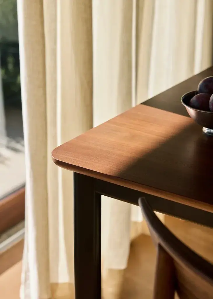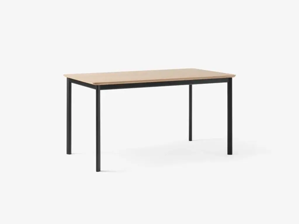Introducing an element of tactility to the series, Hee Welling’s solid edge dining table is a lesson in simple solutions that enhance the rituals of everyday life. Available with either an Oak or Walnut table top, this latest model to join the collection is characterised by clean lines and a sturdy construction, suitable for both homes and hospitality settings.Materiale del prodottoRovere massello e impiallacciato in rovere o noce massello e impiallacciato in noce, MDF, alluminio estruso.Processo di produzioneIl piano del tavolo è realizzato in truciolato. I profili in legno massello sono incollati ai bordi della tavola e l'impiallacciatura è quindi incollata alla parte superiore della tavola. I bordi sono fresati in una forma arrotondata. Infine, il piano del tavolo è laccato con una vernice trasparente a base d'acqua. Per la variante noce, viene applicata una tinta per ottenere un colore uniforme.VariantiRovereNoce