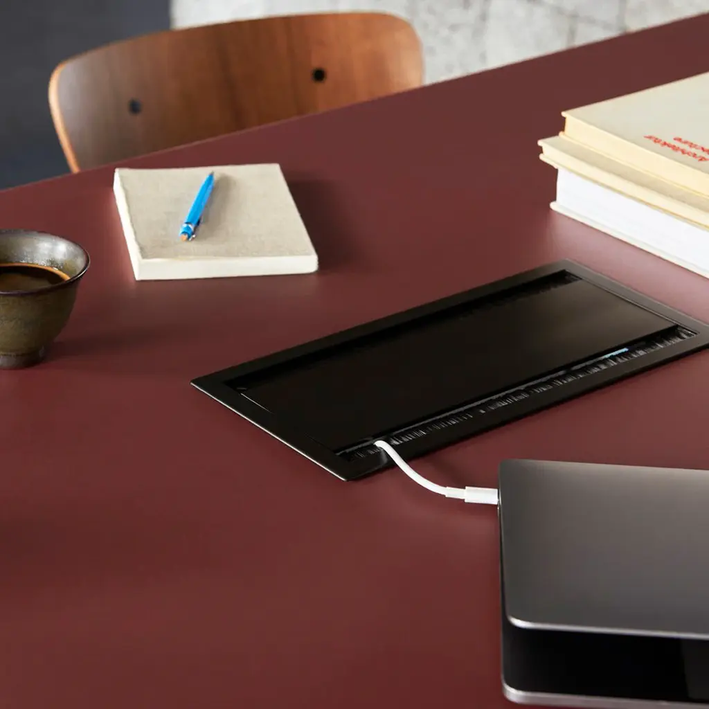Drip, a highly versatile table made from 80% recycled aluminium, has been designed specifically with the contract market in mind. Knowing that contract clientele require their pieces to be flexible, Welling devised a table system that would adapt to different uses. Arriving as a knock-down that can be easily assembled within a few minutes, Drip's base comes in three options: black, bronzed, and a polished aluminium offered only for the dining table. Its table top is available in Fenix laminate, linoleum, and an oak or walnut veneer.