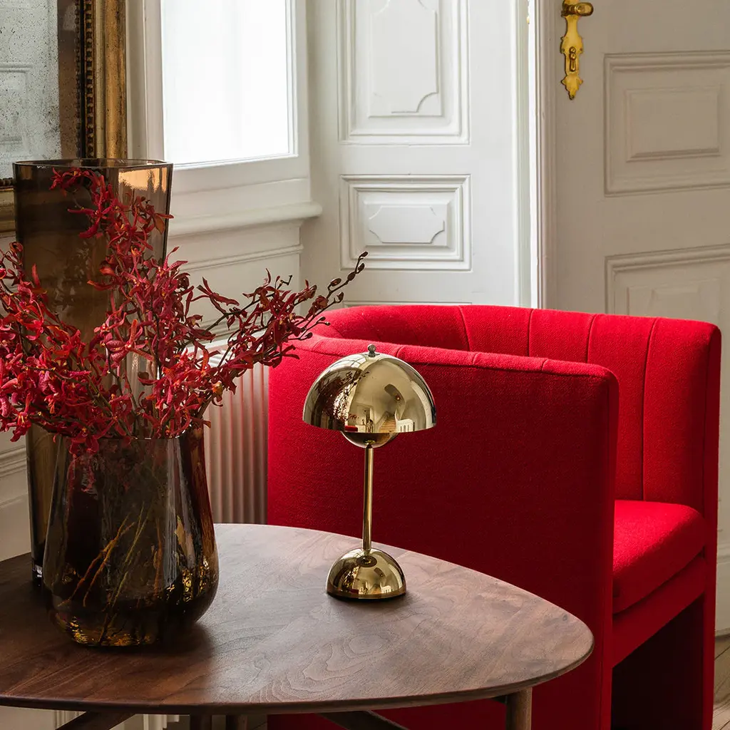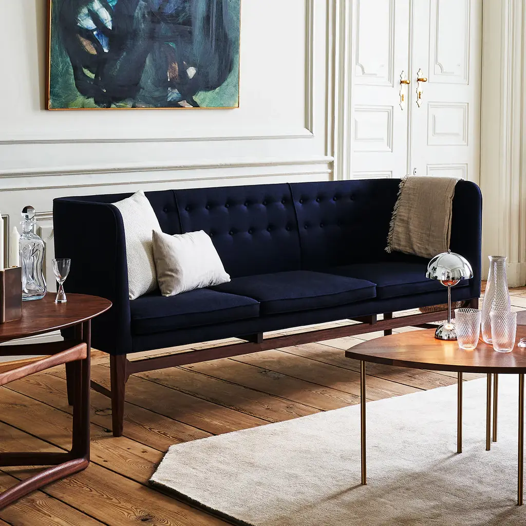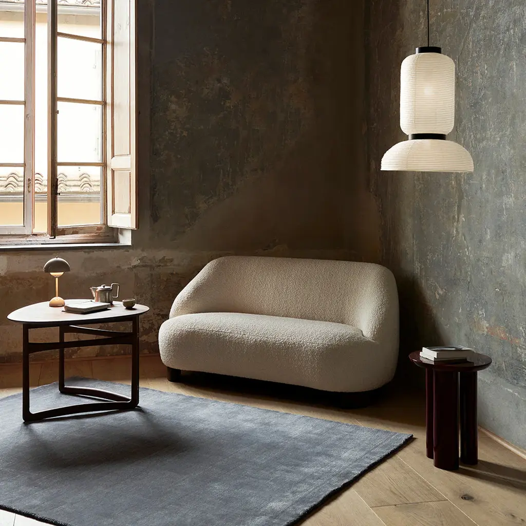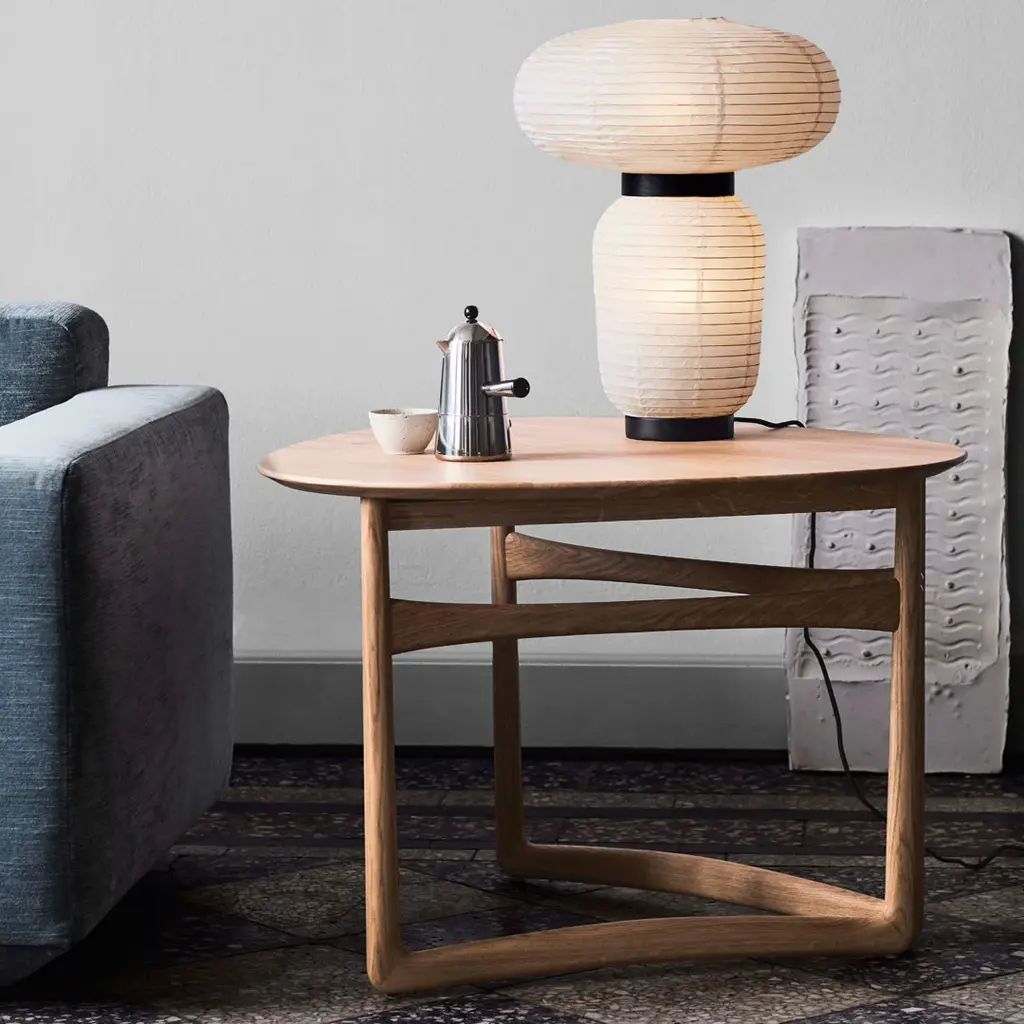 An easily foldable lounge table that provides flexibility. Looking to create a versatile piece that would adapt to its surroundings, duo Hvidt & Molgaard devised Drop Leaf HM5 in 1956. As part of the Drop Leaf series, this lounge table is easily folded in half and tucked away. It also boasts the same curved wooden frames as the larger dining table version. While the drop-leaf style originated in England in the 17th century, this historic design was given a modern Danish rendering by Hvidt & Molgaard in the 50s. The table's foldable design ensures that it's a flexible addition to any home, but such a sharp attention to practicality is balanced with a keen appreciation of form. The table's collapsible wooden frames curve slightly outwards, adding a subtle point of interest. The decision to use frames instead of legs as supports had another benefit: whether folded away or stretched out in a star shape, they create a clean, harmonious form. On the table's underside, brass fittings gleam. Renowned for their rigorous approach to design, Hvidt & Molgaard were pioneers in the shift towards industrialized production. Their understanding of traditional craftsmanship techniques was combined with the determination to craft pieces that were easy to assemble and produce on a mass scale. &Tradition continues their legacy with Drop Leaf, taking great care to remain respectful to the original design.