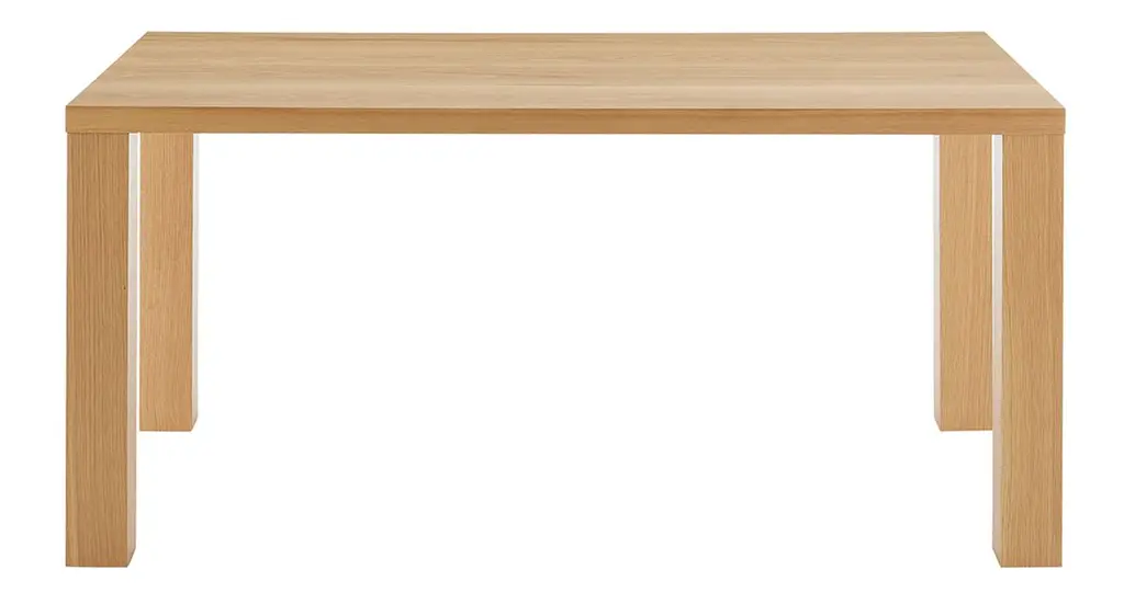 A style chameleon, this dining table can easily be dressed up or down, thanks to its clean lines and white oak veneer. Metal rods in the legs ensure maximum durability. Seats up to six people.