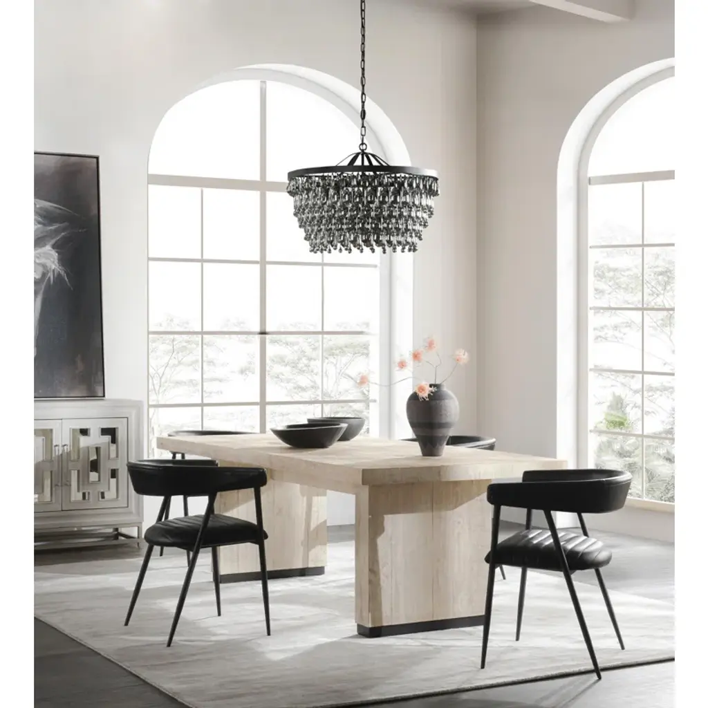 Boasting mission-style mortise and tenon joinery, this farmhouse table delivers a traditional look to any dining space. Aged, reclaimed oak wood infuses this table with unique character through variations in grain patterns and color, along with other historical markings. Finished by hand in black and brown, this table suits any color scheme.