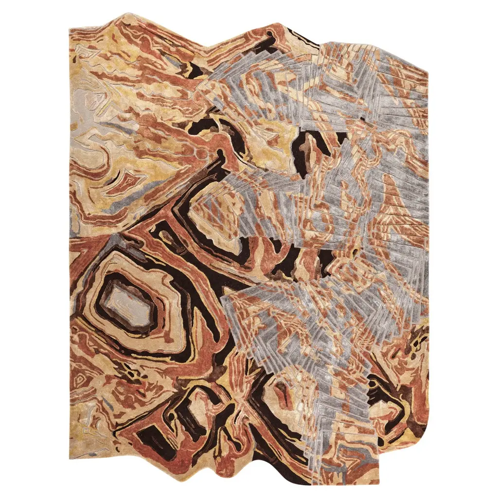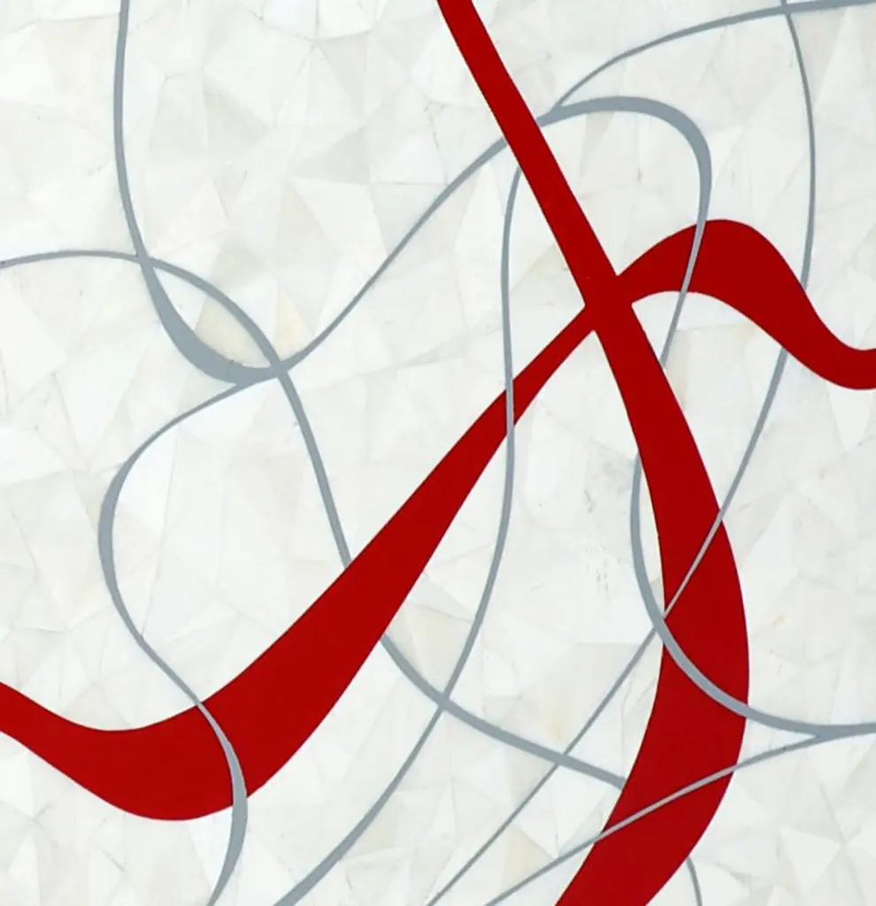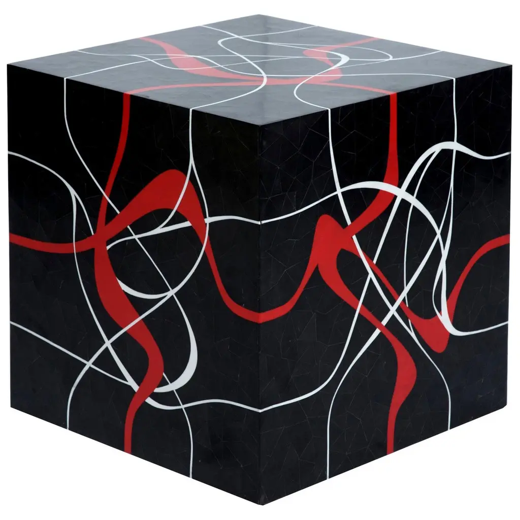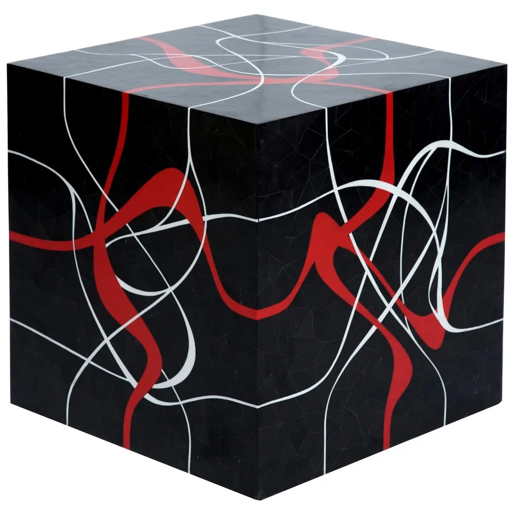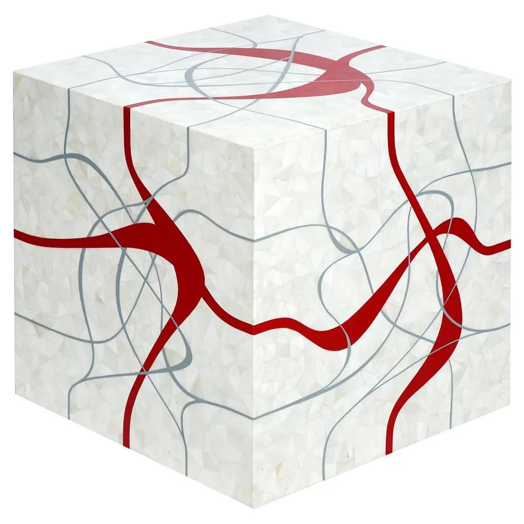 Dune Modern Cube Shaped Table In Bone With Grey And Red Resin Inlay
