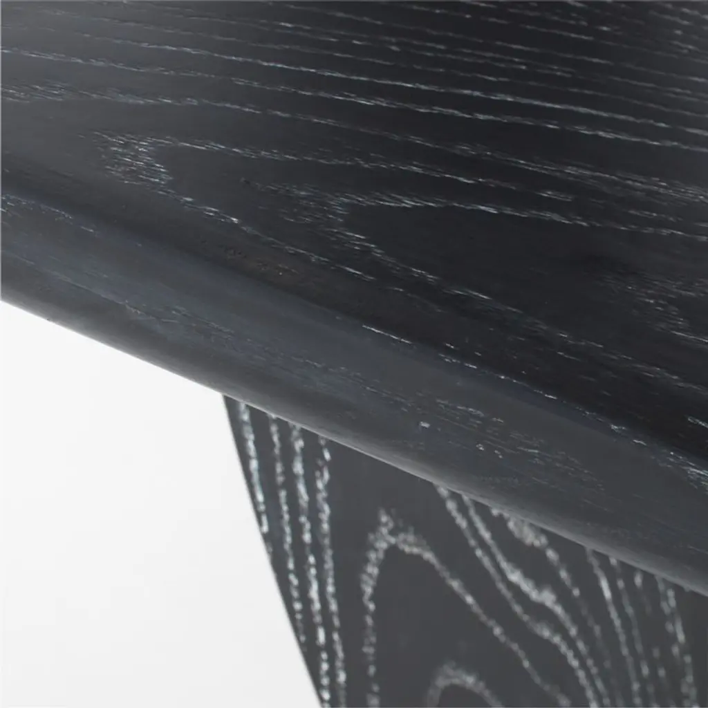 FSC -certified cerused ash wood is the highlight of this large-scale dining table by Studio Anansi. Wirebrushed and stained black, wood reveals a varied grain pattern and natural knots to striking effect. CB2 exclusive.