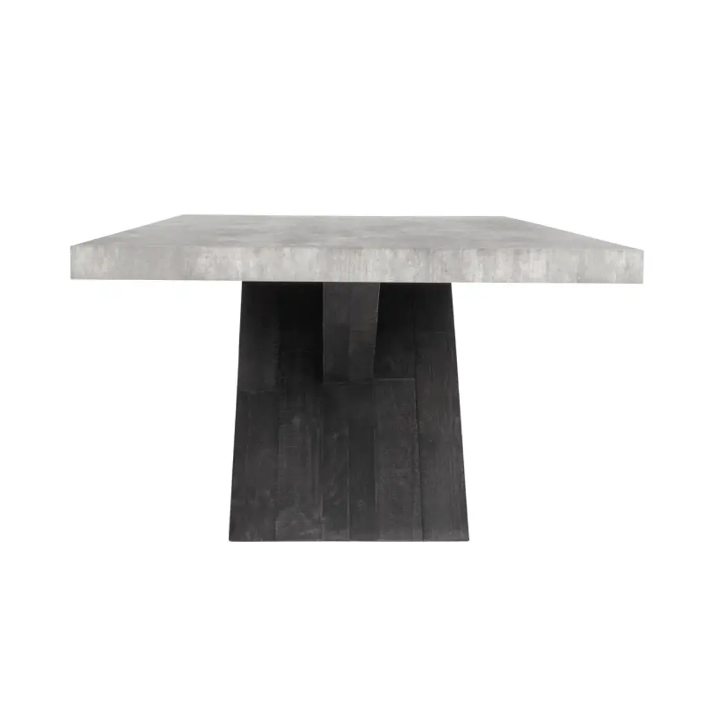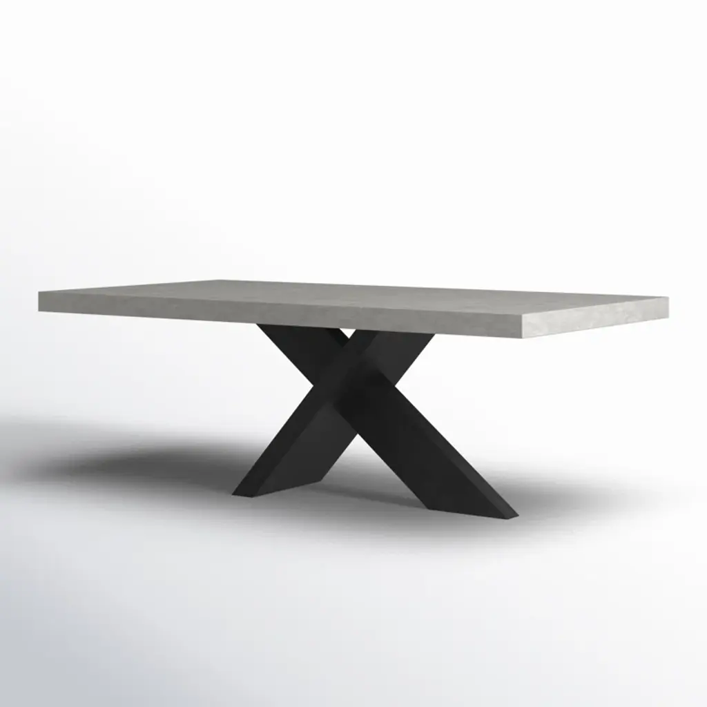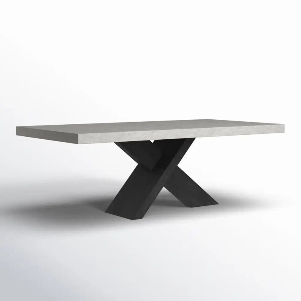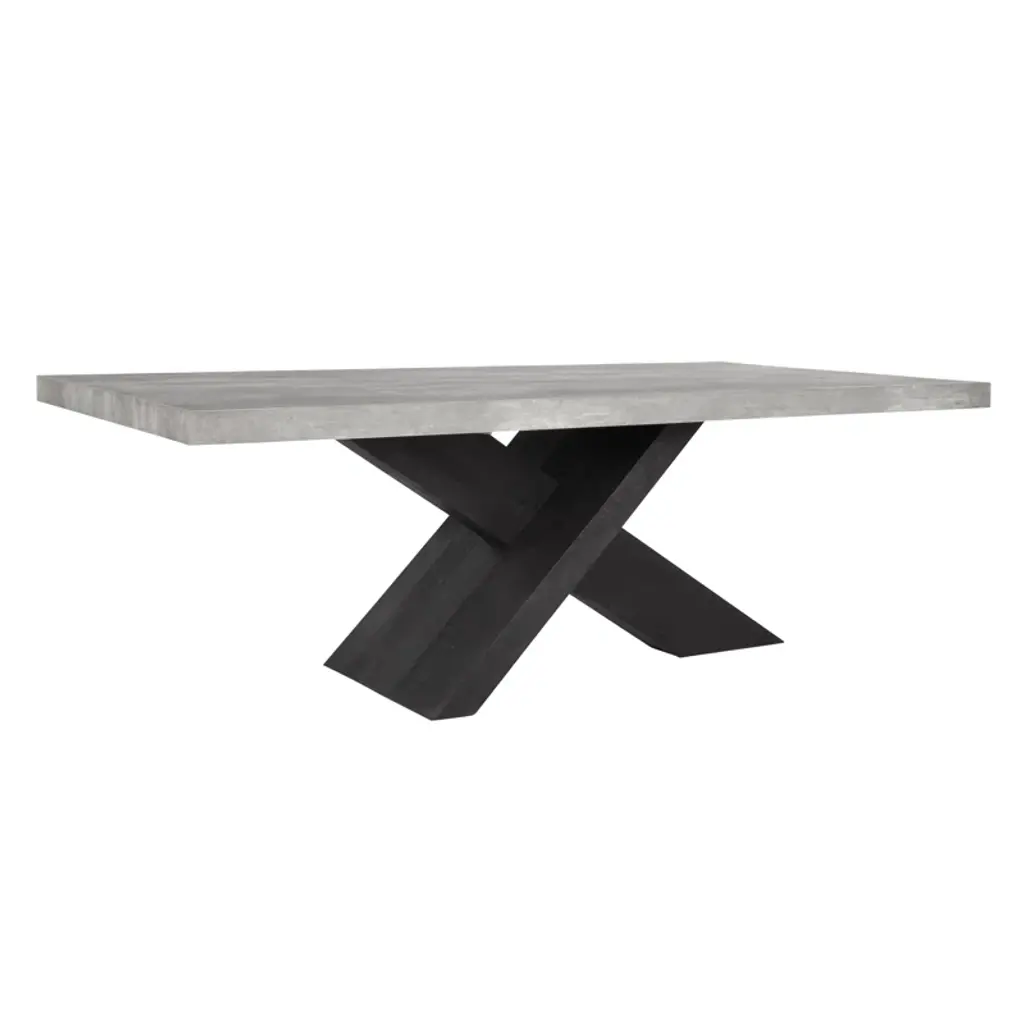 Revitalize your dining room with this stunning table that seamlessly blends contemporary aesthetics and traditional charm. Boasting an enduring lightweight concrete laminate top and an oversized crossbeam design, it's not just a piece of furniture – it's a modern masterpiece that transforms your space with enduring elegance.
