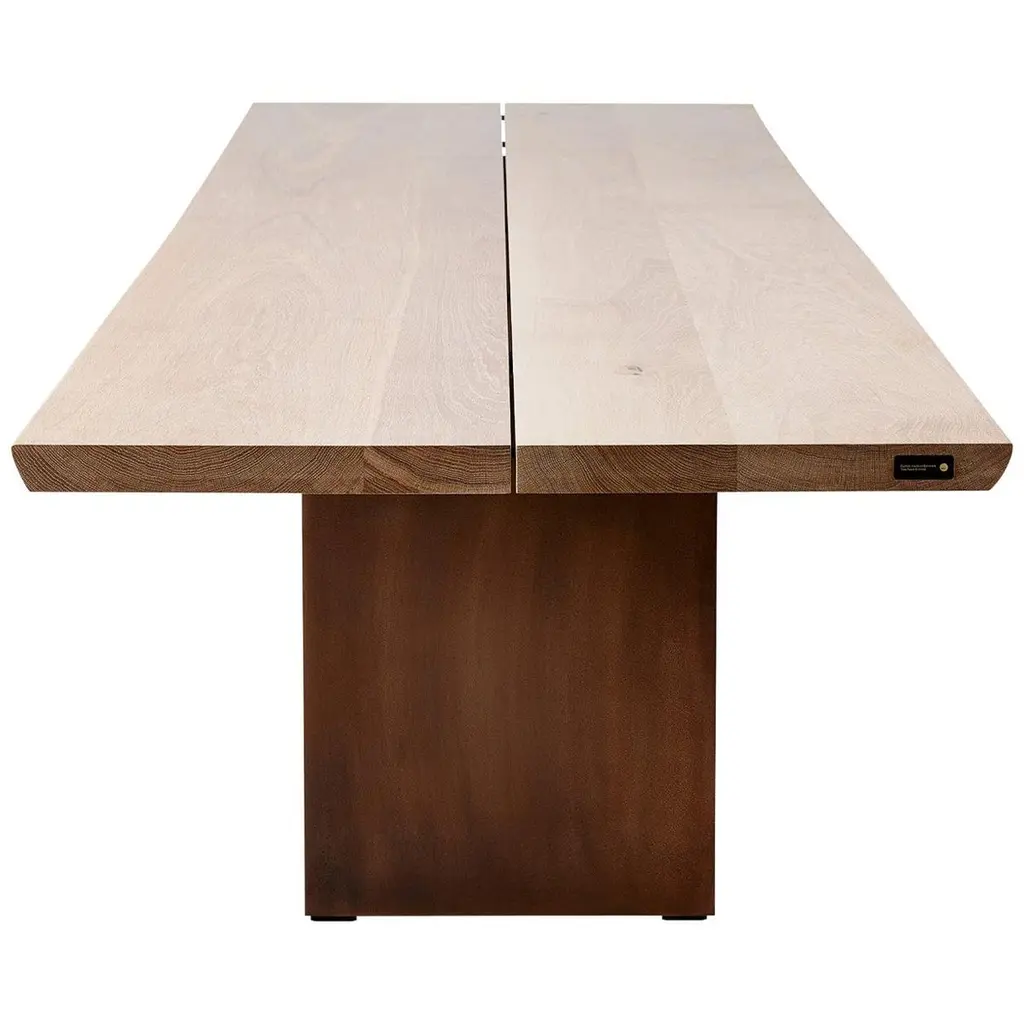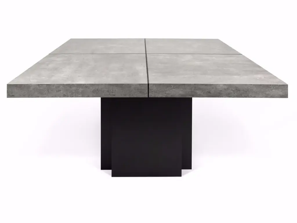 Dusk dining table 130x130 cm / 150x150 cm.A bold piece par excellence, Dusk is where heavenly geometry meets rigour and durability. A table for everyday use, Dusk uses a central stand instead of the traditional four legs, offering additional space for extra guests. This piece will go wonderfully with many get-togethers at home.