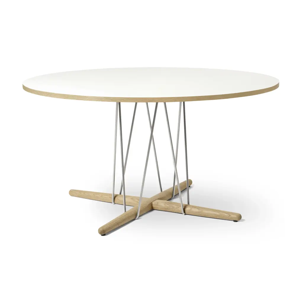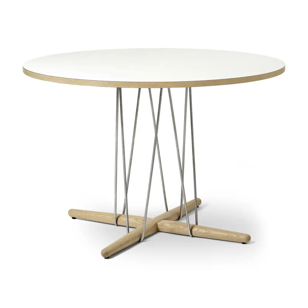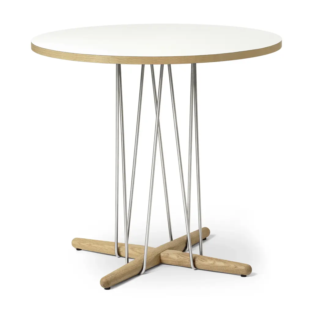 Add unique style to your favorite dining or collaboration area with the E020 Embrace Dining Table from Carl Hansen and Son. Crafted by Austrian trio EOOS, this functional masterpiece reimagines a classic design with its wooden base, steel wire structure, and circular tabletop. Inspired by a kite in flight, the unique silhouette maximizes legroom and promotes social interaction, making it the perfect centerpiece for any gathering. Embrace style and functionality with this elegant dining table. Highlights