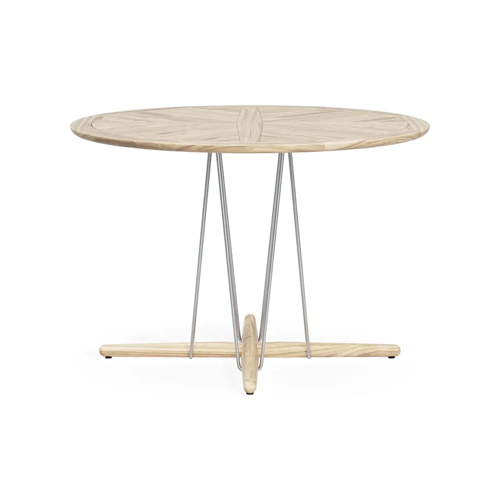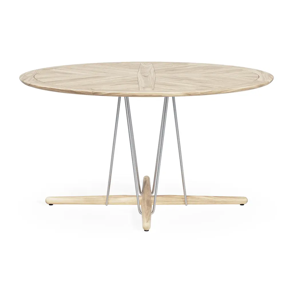 Upgrade your outdoor dining experience with the E022 Embrace Outdoor Dining Table from Carl Hansen & Søn. This Scandi-chic design, featuring a solid teak base and tabletop, seamlessly blends with the indoor Embrace Series. The sturdy steel suspension adds a dynamic touch, while the graphic, slatted top adds strong visual appeal to your garden or favorite patio dining space. Highlights