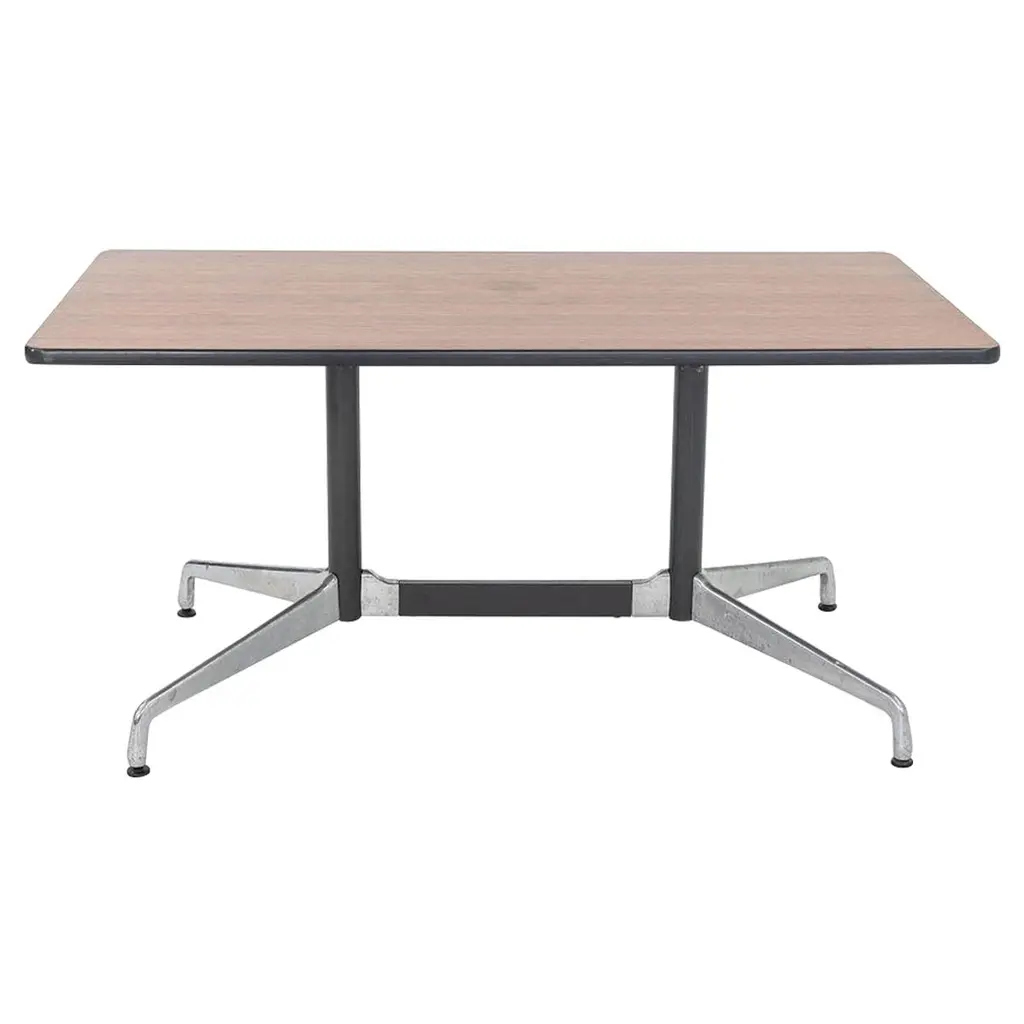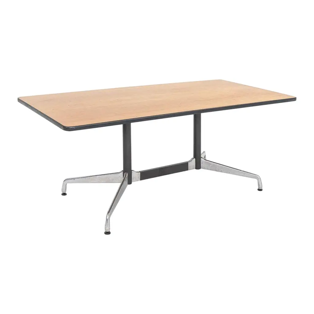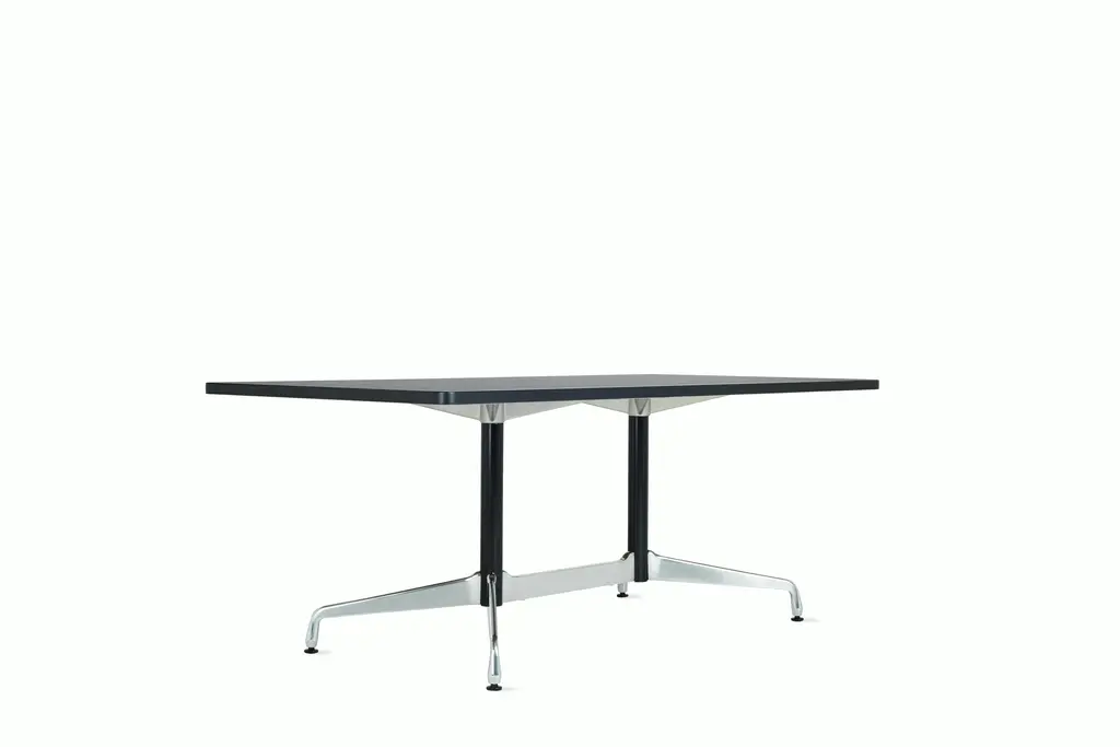 Drawing on a theme of versatility, the Eames Table (1964) offers a durable, simple, and sleek design for a variety of settings. A sturdy streamlined base provides plenty of legroom, while leveling glides correct for uneven floor surfaces. An elegant take on the modern rectangular dining table, the Eames segmented base table ships assembled. This is an authentic Eames Table by Herman Miller.
