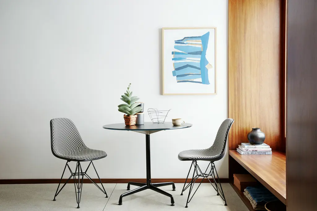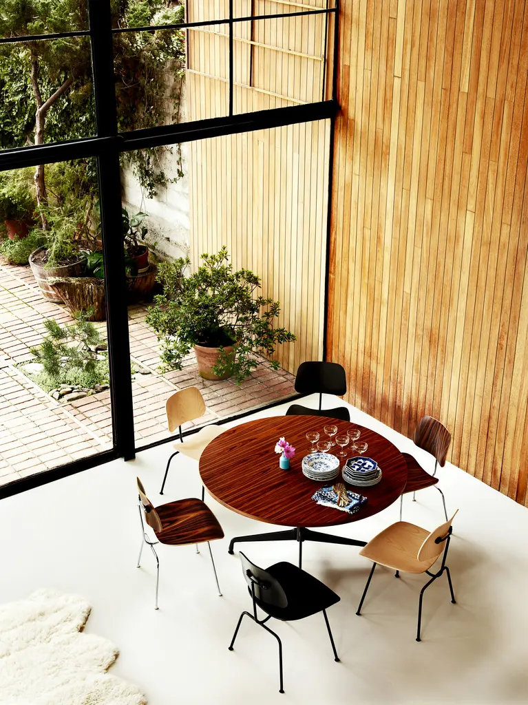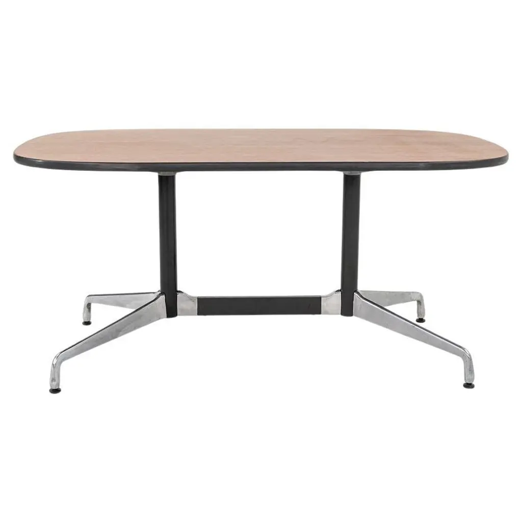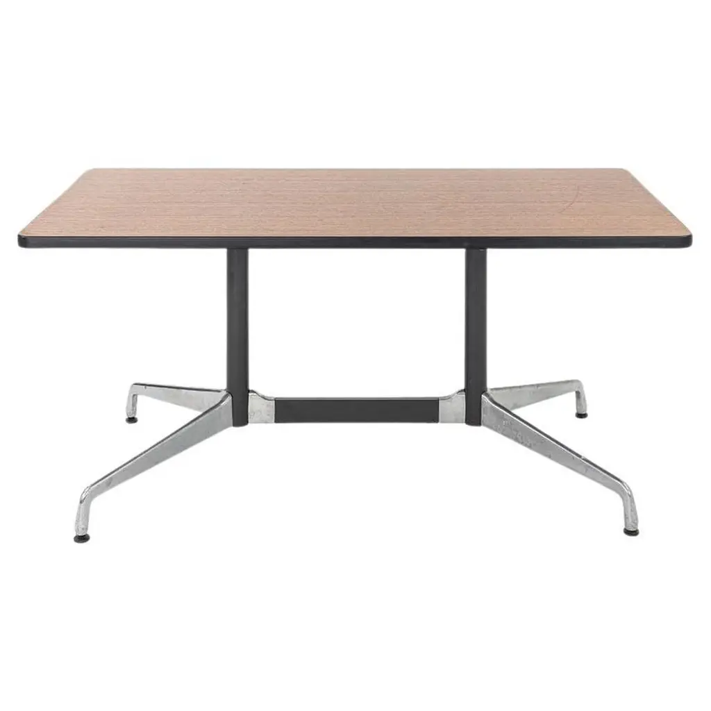 Drawing on a theme of versatility, the Eames Table (1964) offers a durable, simple, and sleek design for a variety of settings. A sturdy streamlined base provides plenty of legroom, while leveling glides correct for uneven floor surfaces. An elegant take on the modern rectangular dining table, the Eames segmented base table ships assembled. This is an authentic Eames Table by Herman Miller.