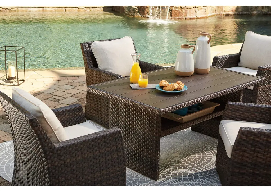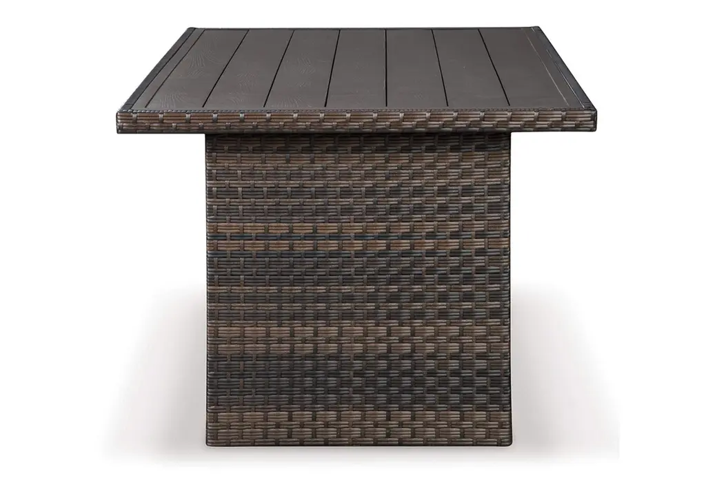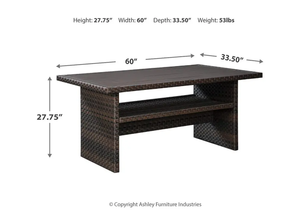 Alfresco living is easy to love with the Easy Isle multi-use table. Its raised height makes it perfect for mealtime, game time, a round of cards or a round of drinks. Resin wicker over a rust-free aluminum frame lends an upscale aesthetic that’s downright durable. Aluminum top is conveniently water and stain resistant. Weight 53.000 lbs. (23.85kgs.)