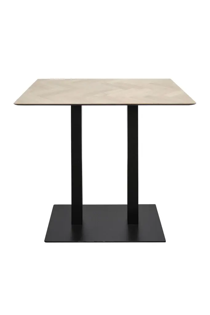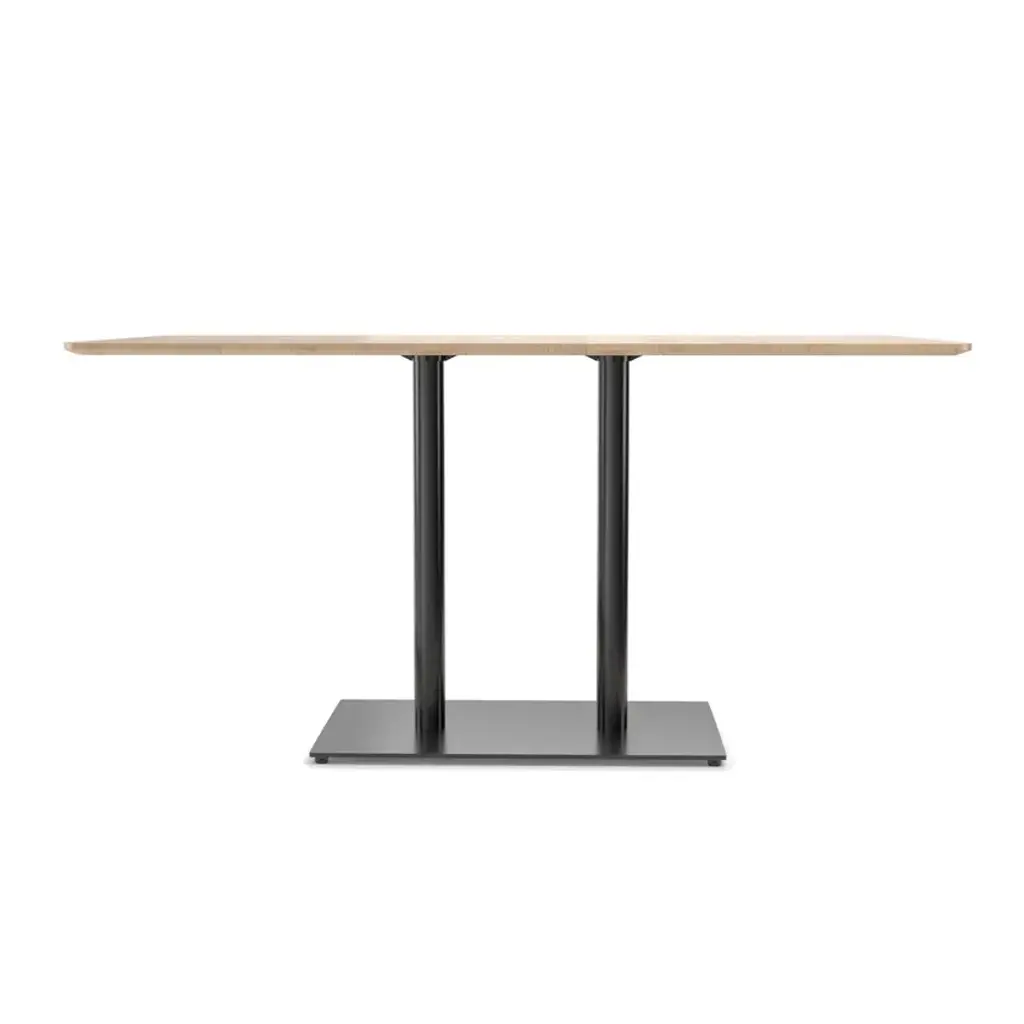 The core of our pedestal table is its steel base, made with a square or a round footprint. From the base emerges the central post, which is available in two heights. For a rectangular tabletop we recommend a base configured with two central posts.
