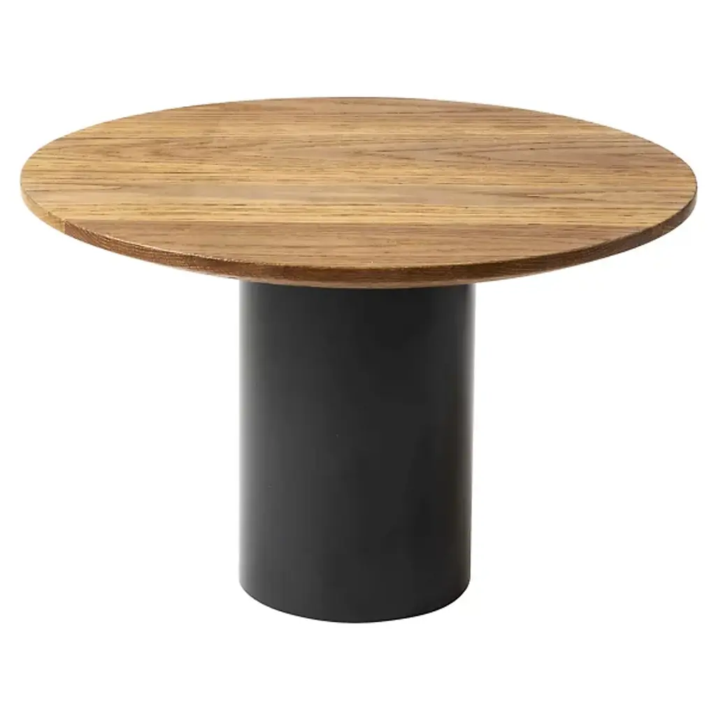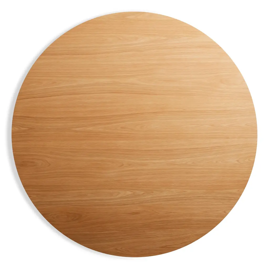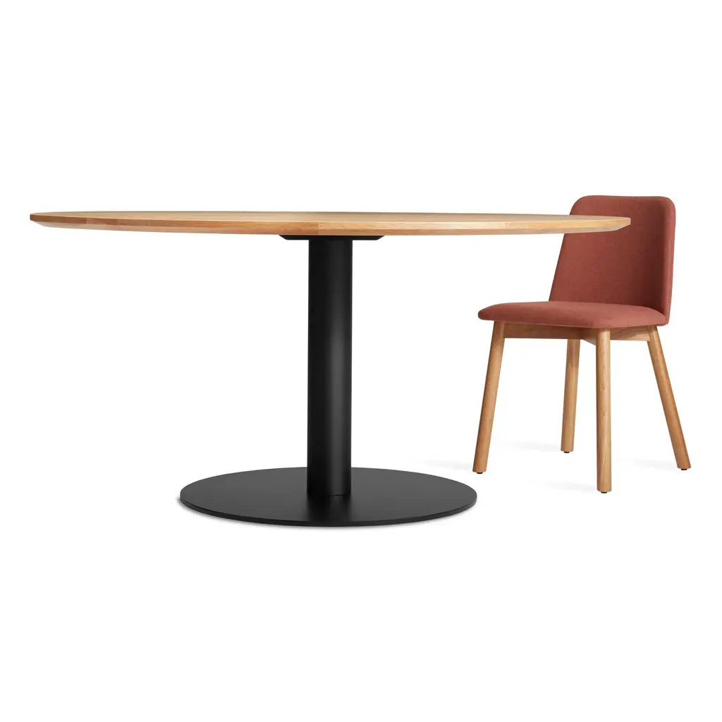 Frozen pizza or five-star feast, this biscuit of a table serves it up in style. A simple steel pedestal props up your choice of warm wood or a solid laminate top for a universally flattering table fit for any space and occasion.