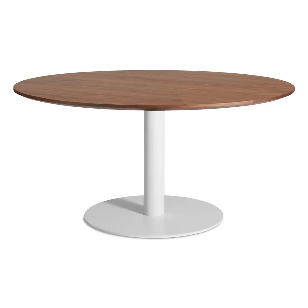 Frozen pizza or five-star feast, this biscuit of a table serves it up in style. A simple steel pedestal props up your choice of warm wood or a solid laminate top for a universally flattering table fit for any space and occasion.
