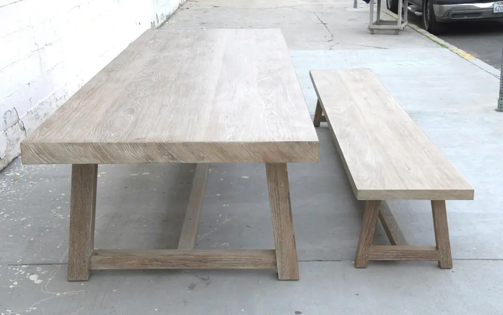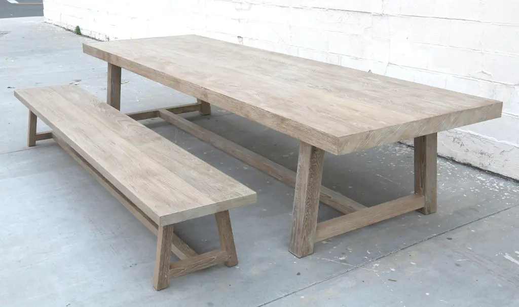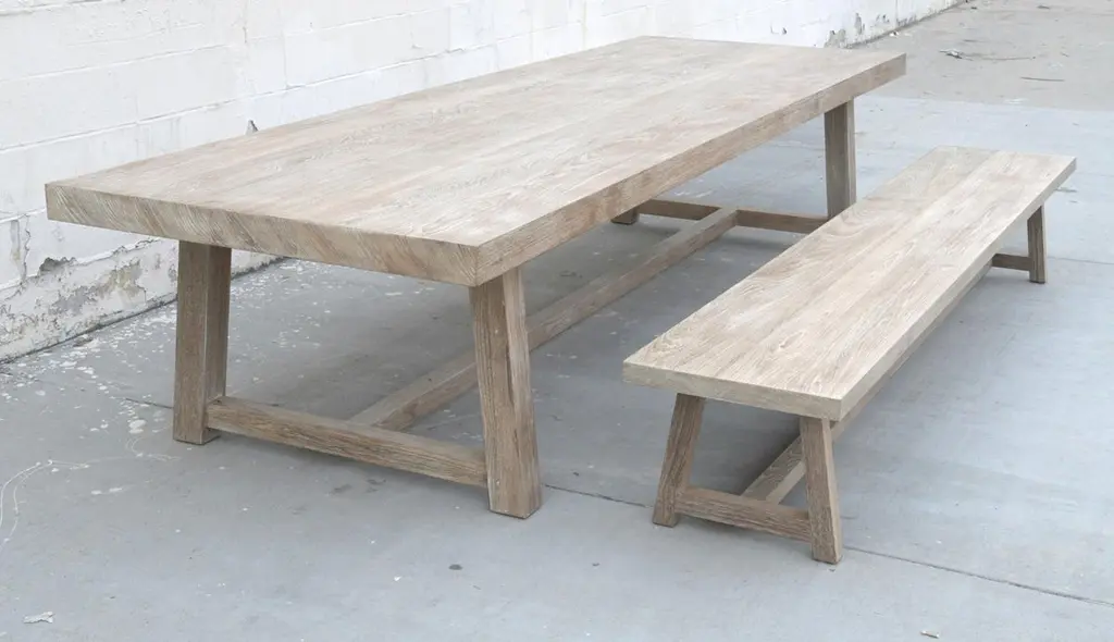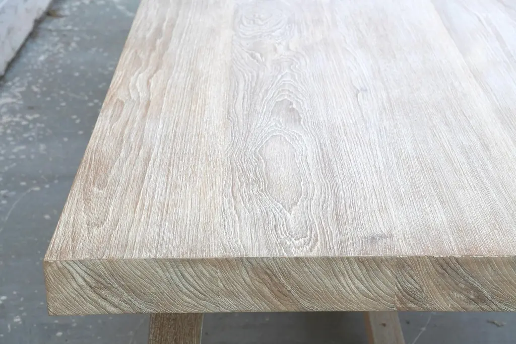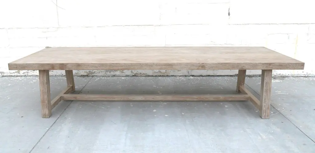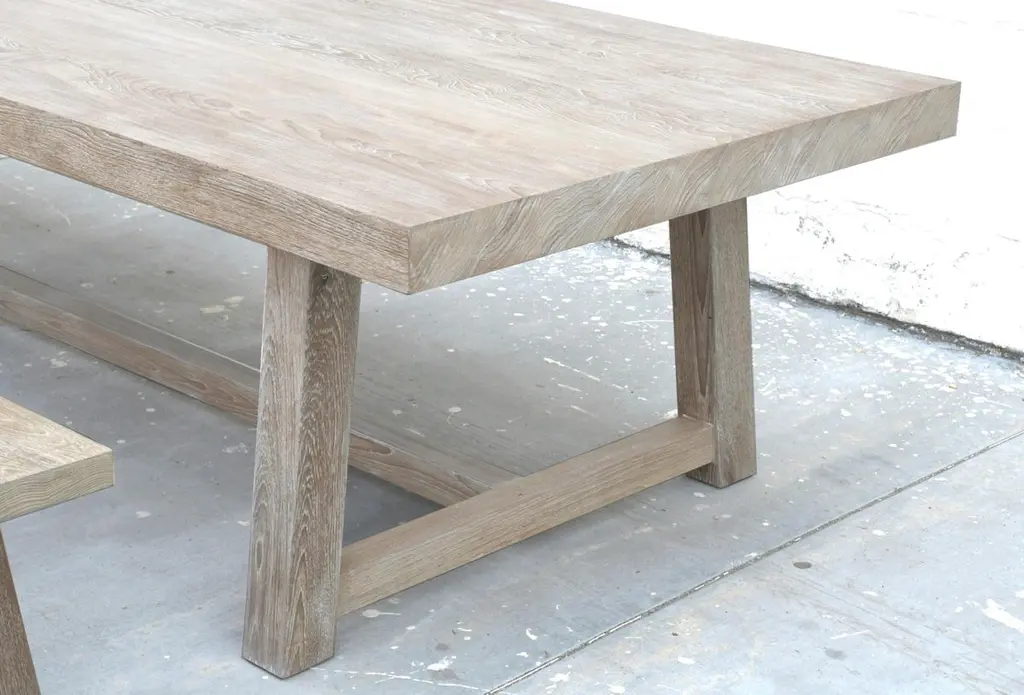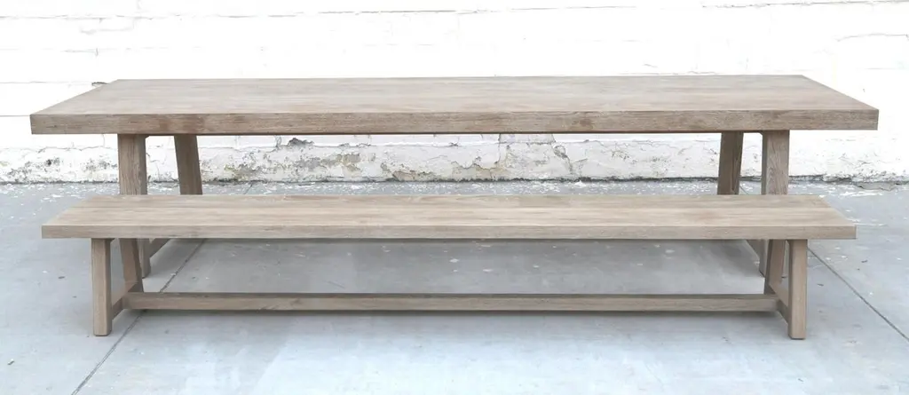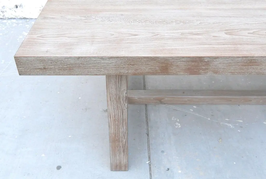 Designed to withstand any climate, this teak dining table can be used either indoors or outdoors. Seen here in 144" x 46" with a 3 1/2" table top and 3 3/4" x 3 3/4" legs, however all dimensions are customizable. Because each table is bench-made in our own Los Angeles workshop you can influence all aspects of design, including size, wood species and finish. We use only traditional carpentry techniques, no nails or metal fasteners of any kind, just mortise and Tenon construction reinforced with hand-cut wooden dowels.If you require customized overhang dimensions please stipulate with order.