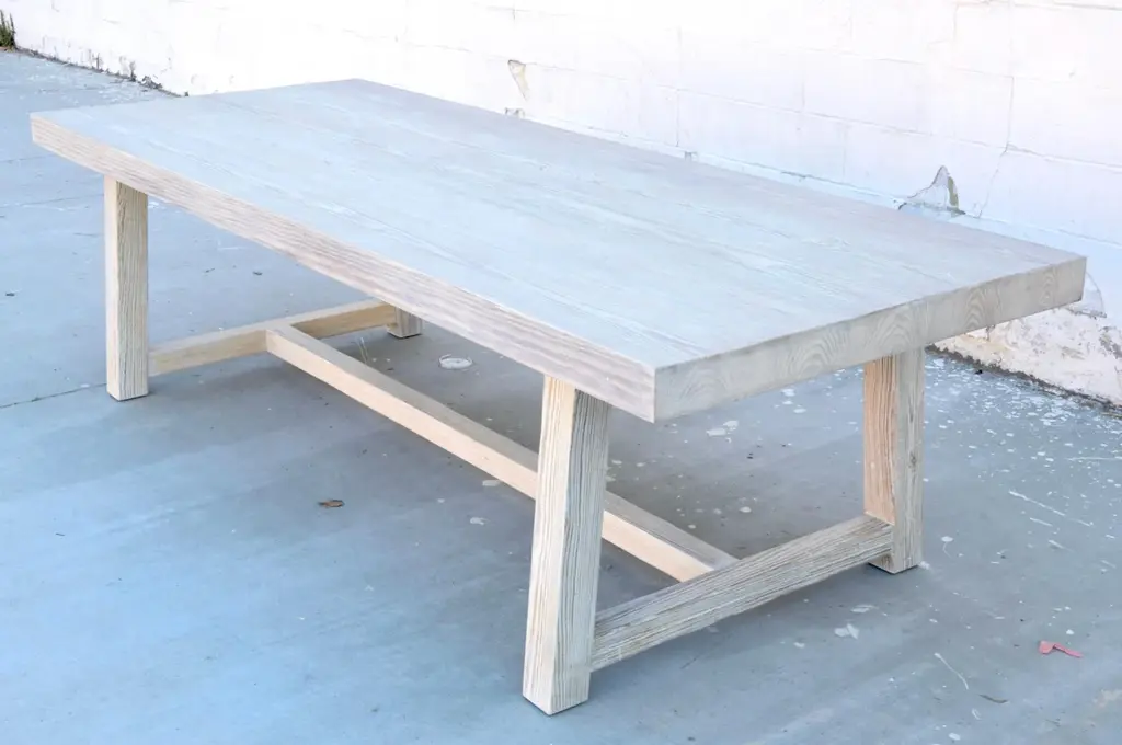 This chunky dining table made from reclaimed pine is seen here in 108" x 42" x 30" H, with a 3 1/2" tabletop and 3 3/4" x 3 3/4" legs, however all dimensions are customizable. We use only traditional carpentry techniques, no nails or metal fasteners of any kind, just mortise and tenon construction reinforced with handcut wooden dowels.