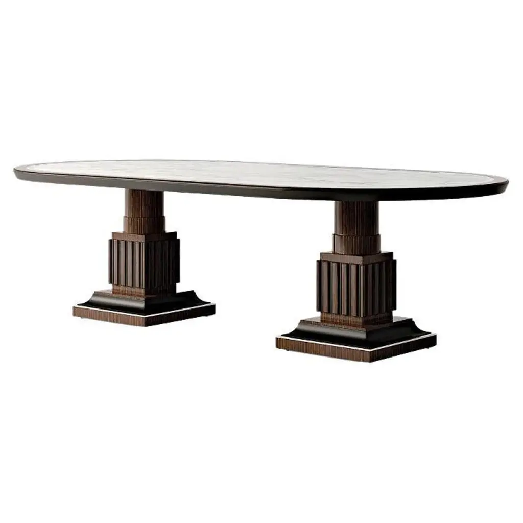 A sublime sculptural design of visually striking allure, this round table features a stupendously handcrafted ebony base and a round and stylish white Carrara marble top. Enriching any decor style with refined sophistication, it will make for a stately accent in a dining room. Please refer to the Concierge for further details and possible customizations.