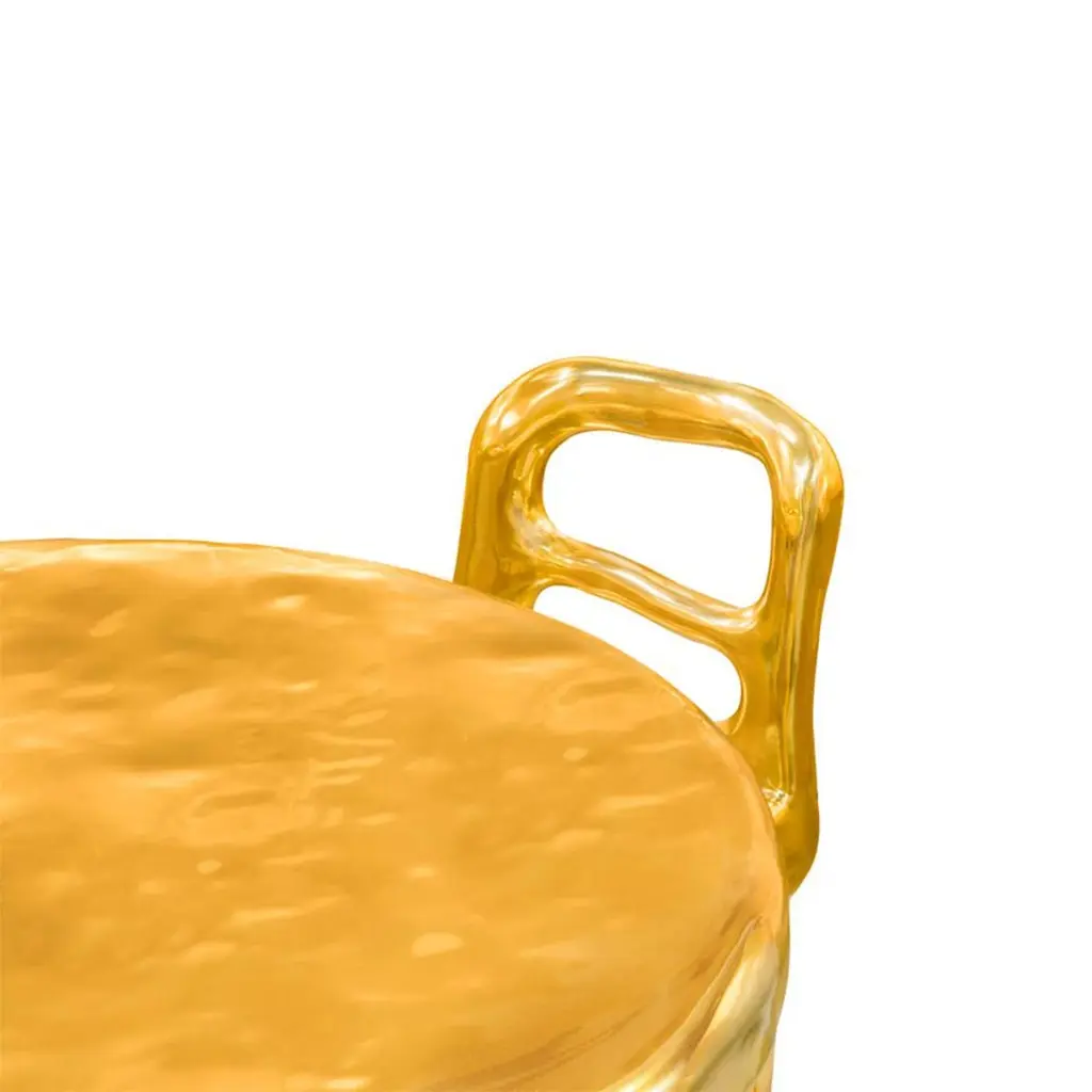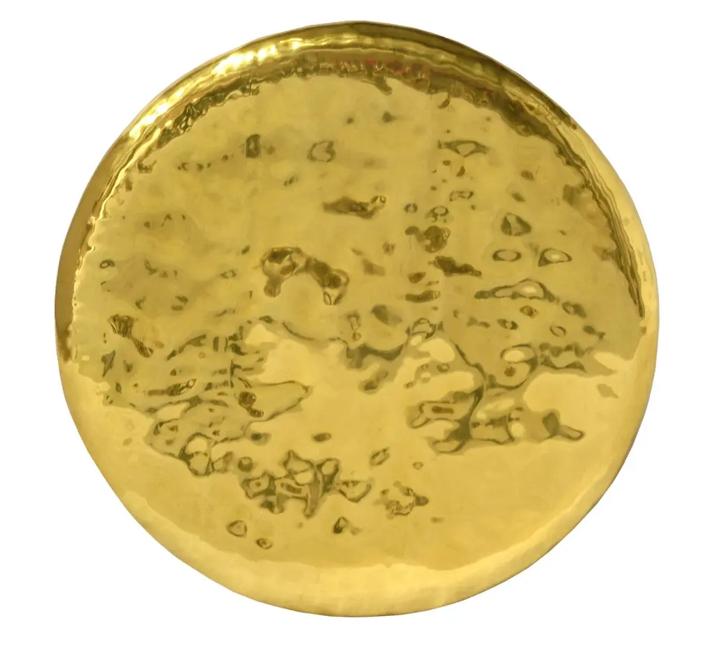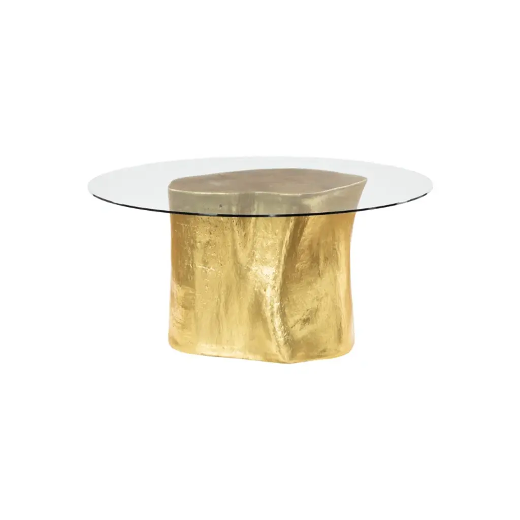 Ecstasy Dining Table in Brass by Scarlet Splendour is an amazing circular dining table for four in pure brass. The Fools' Gold Collection of amorphous forms, cast in brass, is a tribute to the heritage of Indian metal craftsmanship. India, in fact, is one of the largest brass makers in the world. The art of brass handicraft has been practised here for almost 5 million years, say historians. Brass, a simple alloy of copper and zinc can often be confused with gold. Much like Martin Frobisher, the British seaman who visited Canada in the 16th century, saw a shiny metal like gold, mistaking it to be gold itself.Care: Wipe with a soft, dry cloth. Use a brass cleaner if required.Please note: Each piece in the Fools' Gold collection exalts the handmade, the painstakingly crafted, the authentic. A piece may have slight variations and tiny imperfections but these are the marks of an artisan, a testament to the individuality of each work of art. It is our belief that these variations infuse our objects d'art which desire and we assert our right to make the necessary qualitative changes. Prices do not include VAT. VAT may be applied depending on the ship-to location.