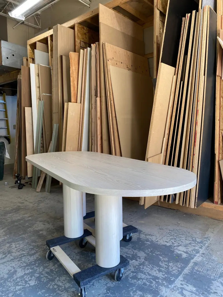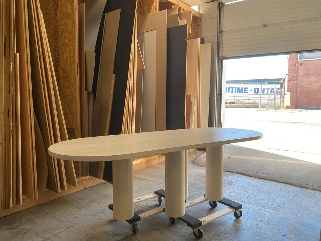 Designed to be sculptural yet honest in its simplicity, our Eden Dining Table can find itself a home in a contemporary environment, or as a statement piece in a more classical space. Sized at 96"L x 42"W x 30"H, this piece can be fabricated in flat-cut solid white oak, oxidized oak or bleached ash. Custom sizes can be accommodated - please inquire for pricing.We work with North American solid hardwoods. Please reach out for any customizations to species, stains, or leather quality. We are more than happy to provide more information and pricing as per your specifications. As all of our products are made-to-order, we cannot accept returns or refunds of purchased items. Crating, shipping & packaging materials are not included in the flat rate shipping quote provided. Please inquire within at the time of order for a quote on any applicable charges.Mary Ratcliffe Studio works with their own shipping & freight carriers and can supply a rate for this on request.Our larger & fragile works will be custom crated & packed for shipping. Some of our smaller items can go out in rigid foam lined boxes via ground shipping. Please inquire within for quotes on these options and related costs.Installation may be required for your piece.Local Delivery within the GTA is available. MRS also works with 3rd party delivery teams in the Toronto area for in-home delivery & installation of your piece should you wish to have this arranged/quoted. Any applicable customs/duties fees are the responsibility of the receiver.
