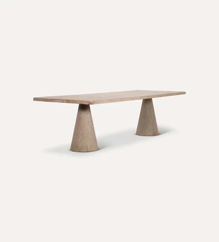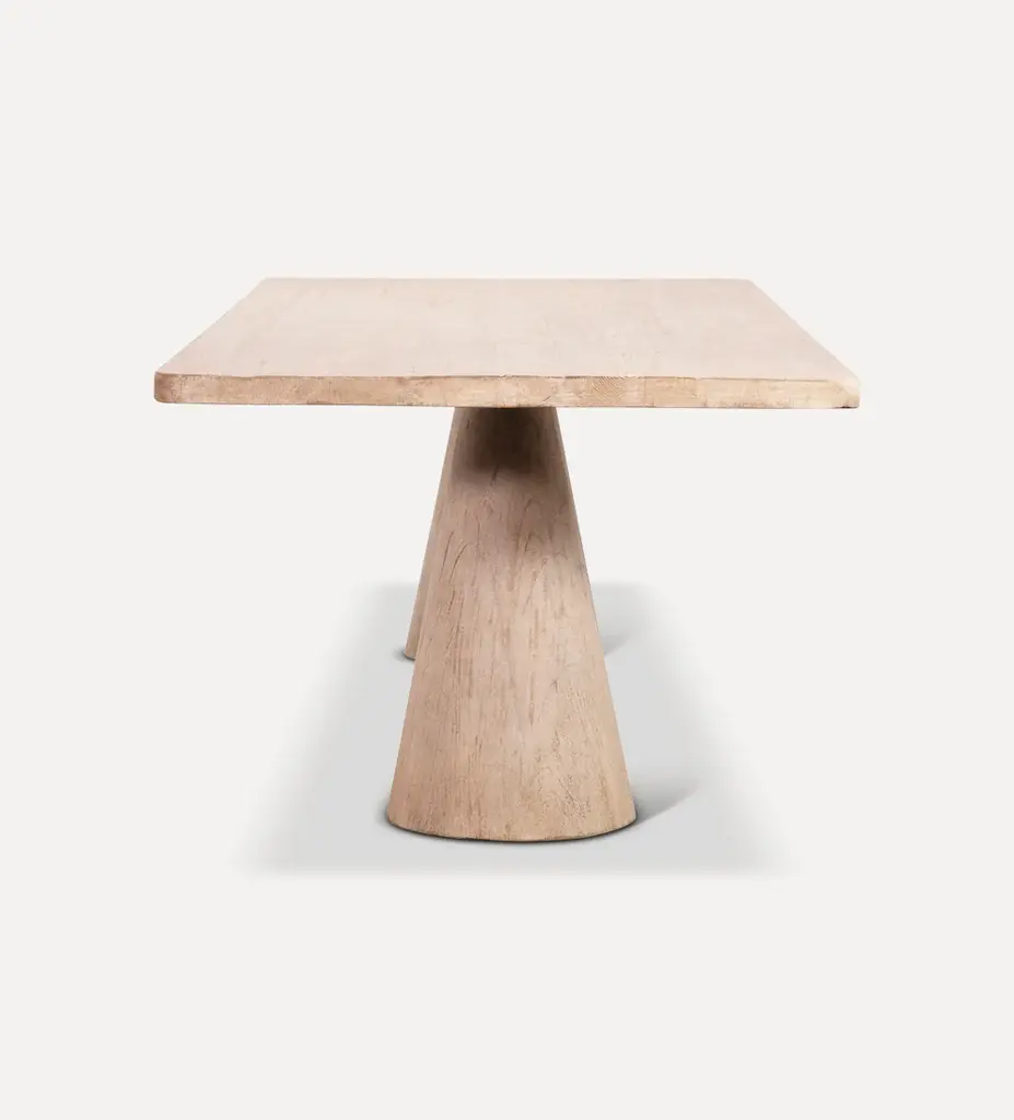 Our Eden Dining Table is crafted from reclaimed pine wood with a light warm wash sealed finish. This dining table showcases beauty with unique legs and provides a modern foundation for your home. Crafted from reclaimed pine wood with a light warm wash sealed finish Dimensions: 108" L x 42" W x 30" H